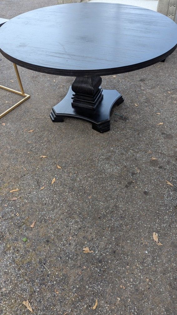 Benjara Traditional Style Wooden Round Top Dining Table with Pedestal Base, Antique Black Color 48.00 x 48.00 x 30.00 Inches Furniture of America Mecca Mid Century Wood Round Dining Table in black