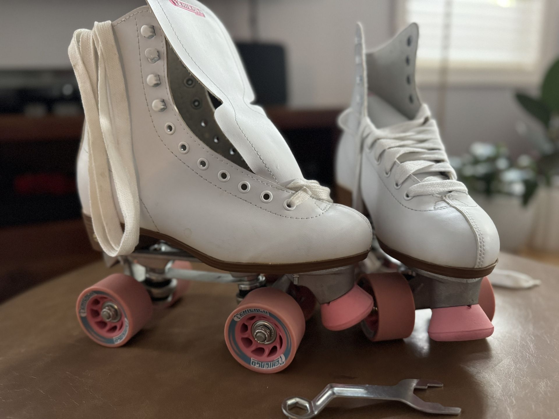 Women’s US size 9, EUR size 41. VERY gently used. Pink Wheels, White Laces