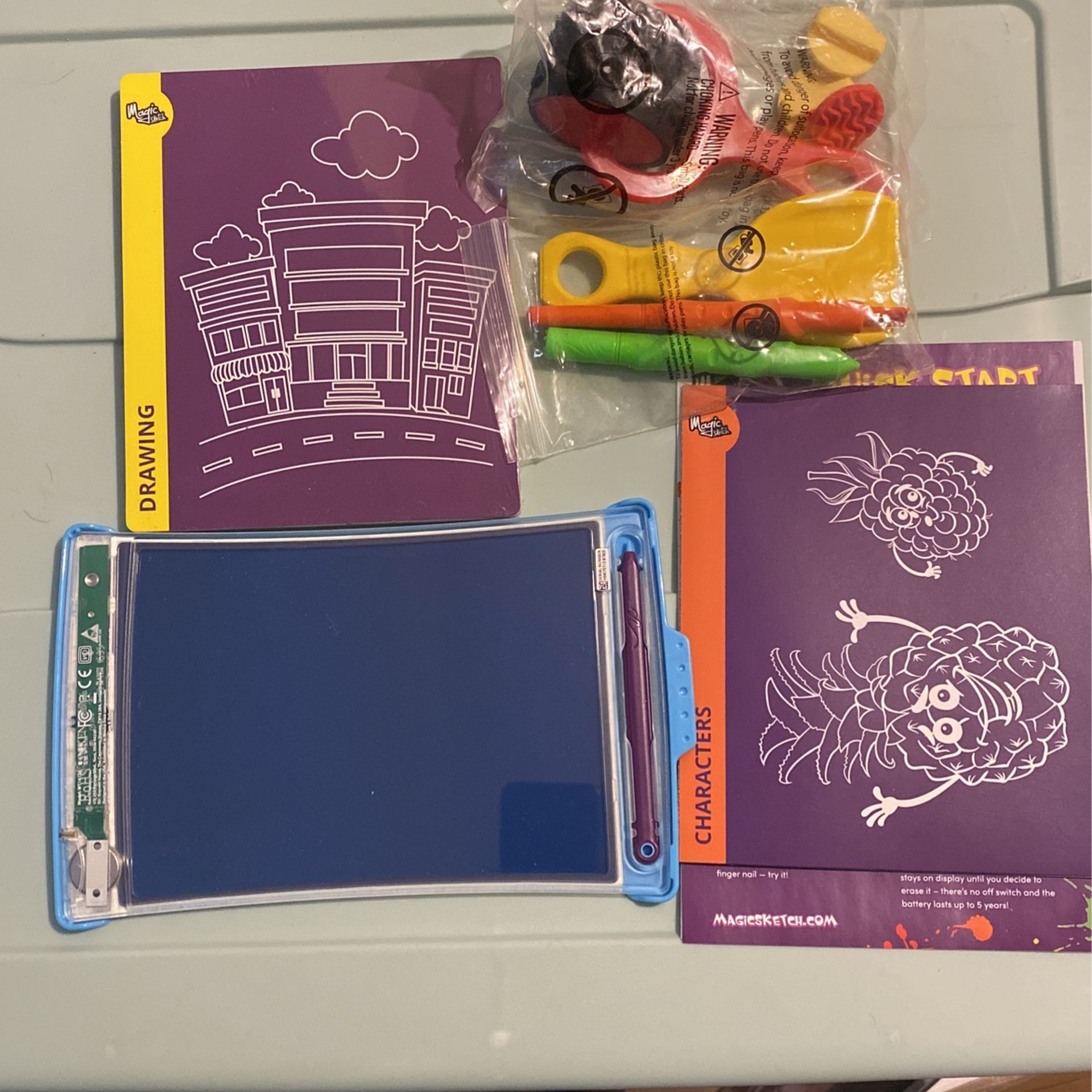 Magic sketch is ready to use right away. There’s nothing to plug-in turn on or charge simply right draw and create using any of the enclosed writing tools.