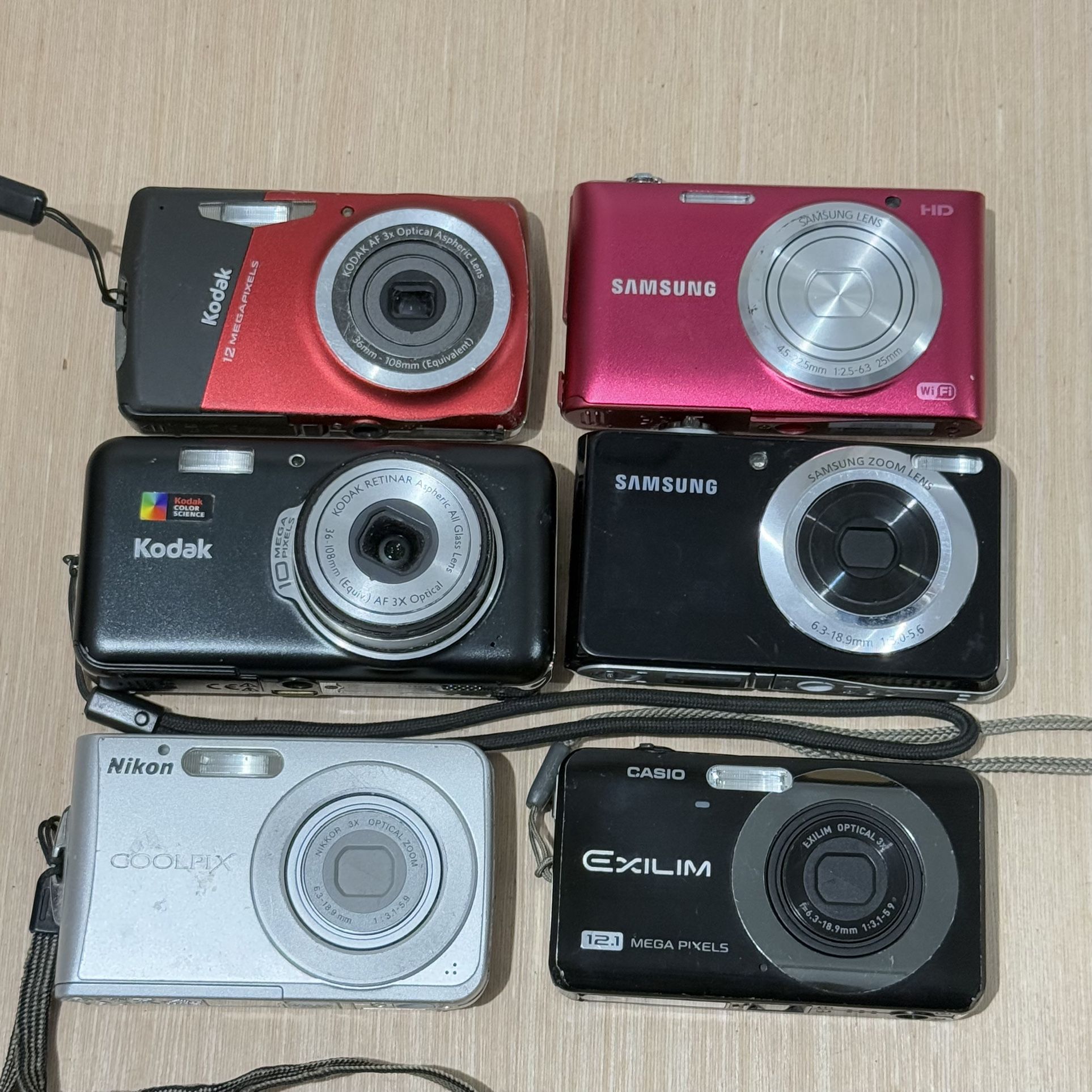 Lot Of 6 Digital,Cameras,Canon,Kodak,Samsung,Casio,Nikon(Parts/Repair)Read Info! Selling for parts or repair only Buy as is 7-10 overall condition cosmetically of all cameras all cameras have cosmetic issues scratches wear, and tear from regular usage All six cameras are for parts of repair Only all cameras have variety of different issues red Samsung camera battery is stuck won’t come out other cameras have Lens Errors I believe one or two camera cameras do not turn on 4 of the cameras have battery No chargers or memory cards included for any cameras 1.7 total weight of all cameras Casio black camera, unsure model,/Kodak EasyShare – M530/V1003,/Samsung TL205/ST150F,/Nikon S202 Selling for parts or repair only Buy as is Please see photos for condition and size measurements of the camera Easy shipping will ship out same day or next no shipping on Sunday or major holidays Thank you for your interest please check out my other listings Take care