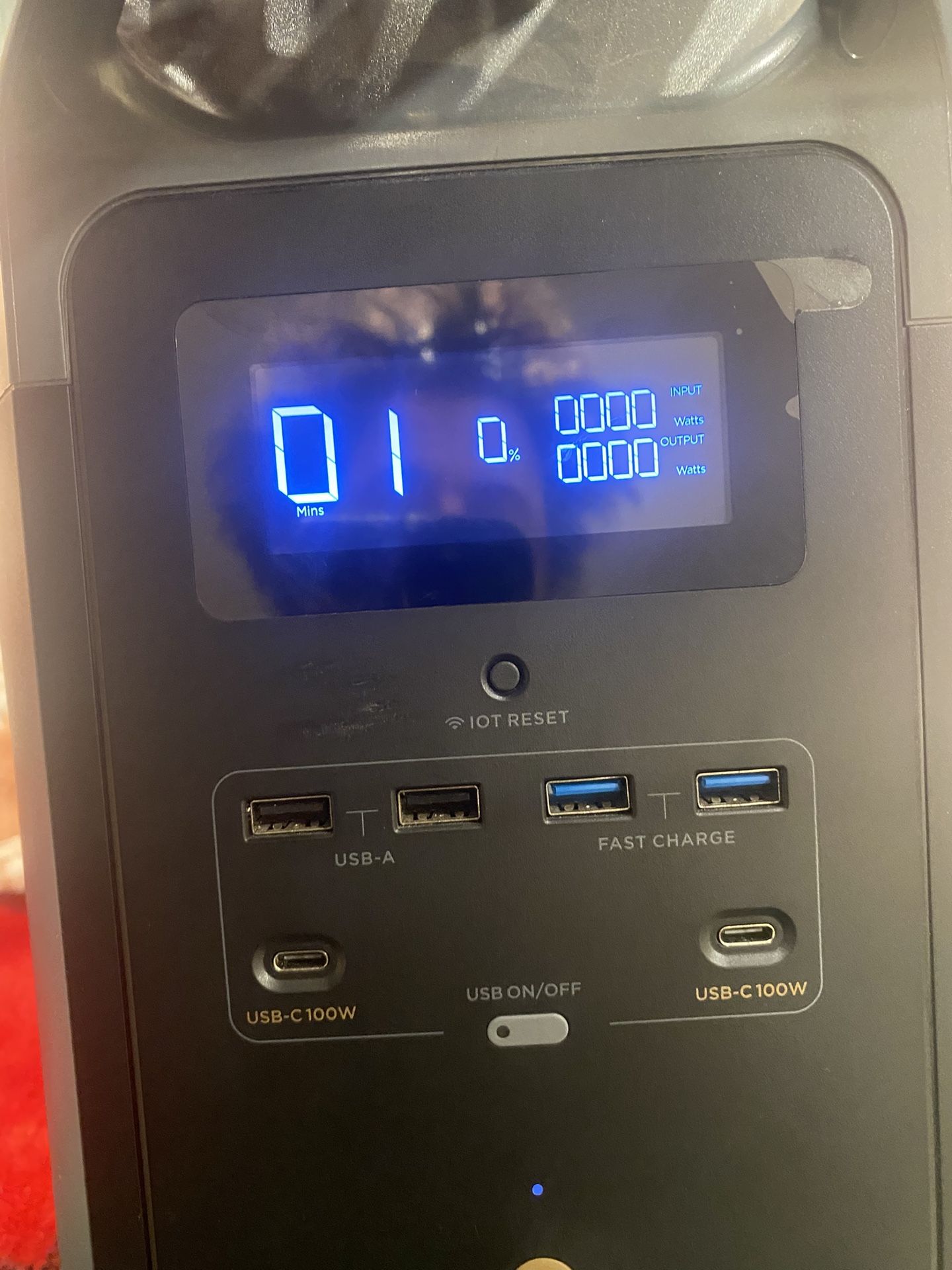 The EcoFlow Delta Max 2000 (Model EFD310) is a portable power station, it does not charge when you plug it in. It will turn on does not charge. That’s why it’s only parts only. Portable Power Station/station électronique portable Model/Modèle: EFD310 https://offerup.com/redirect/?o=d3d3LmVjb2Zsb3cuY29t Capacity/Capacité: 2016Wh 50.4V= Made in China Discharge Temperat Temperature/Température d'utilisation:-4-113°F (-20-45°C) Charge Temperature/Température de recharge: 32-113°F (0-45°C) AC Input/entrée: 100-120V-15A 50Hz/60Hz EcoFlow Inc X-Stream Charge Input/entrée: 1800W Max Solar/Solaire/DC Input/entrée: 11-100V 13A 800W Max Total Output/sortie totale: 2786W 12V Output/sortle: 12.6V 10A 126W Max AC Output/sortie(x6): 120V-20A 60Hz 2400W(Surge 5000W)total USB-A Output/sortie(x2): 5V 2.4A 12W Max per port USB-A Fast Charge Output/rapide sortie(x2): 5V24A 9V-2A 12V-15A 18W Max per port USB-C Output/sortie(×2): 5/9/12/15/20V=5A 100W Max per port Contains FCC ID: 2A2P9-ESP-M2