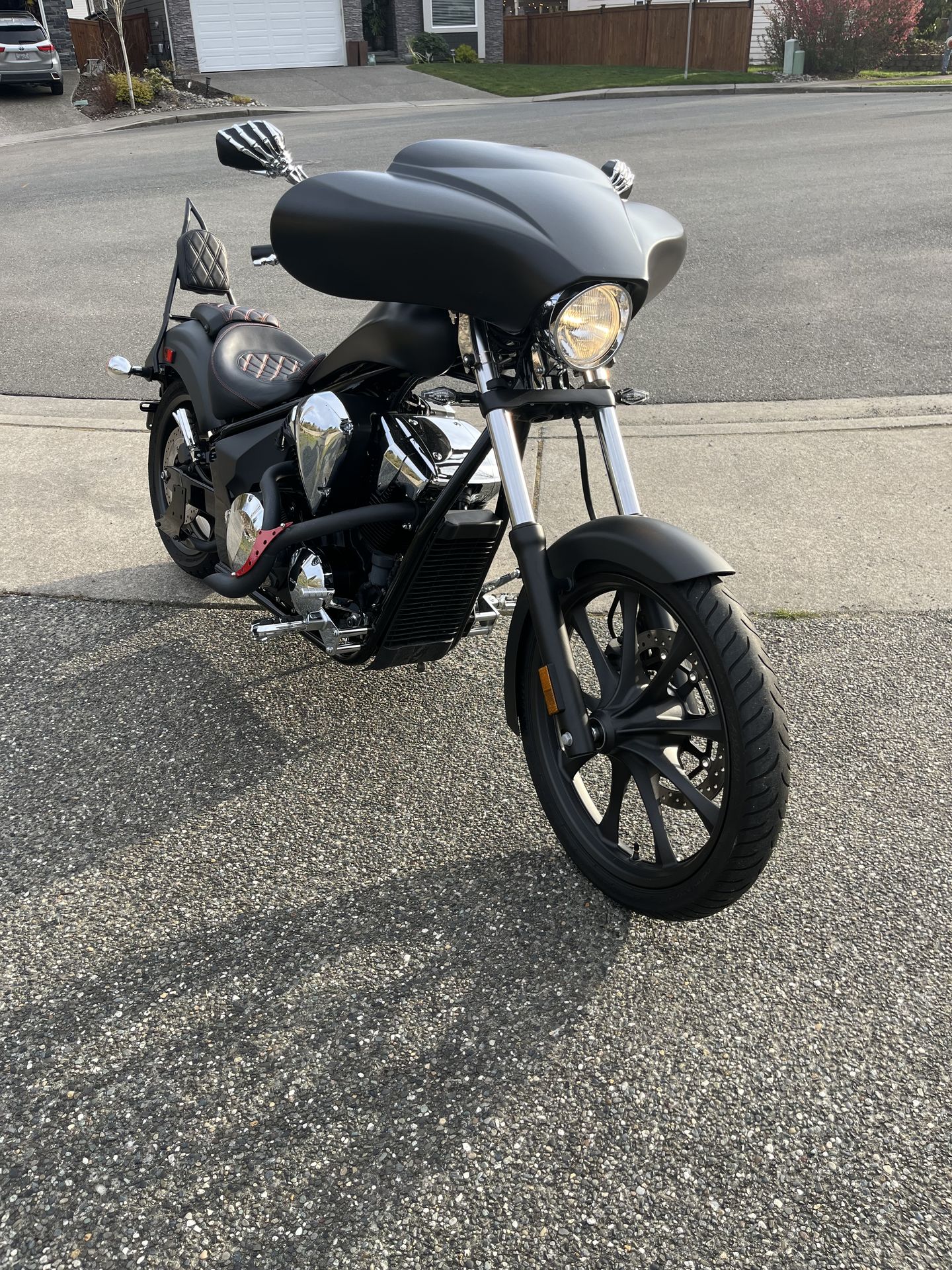 2017 Honda Fury. After market pipes, sissy bar, faring with speakers, and stitched seats. It’s been garage led its entire life. It’s never seen the rain. This bike will turn heads.