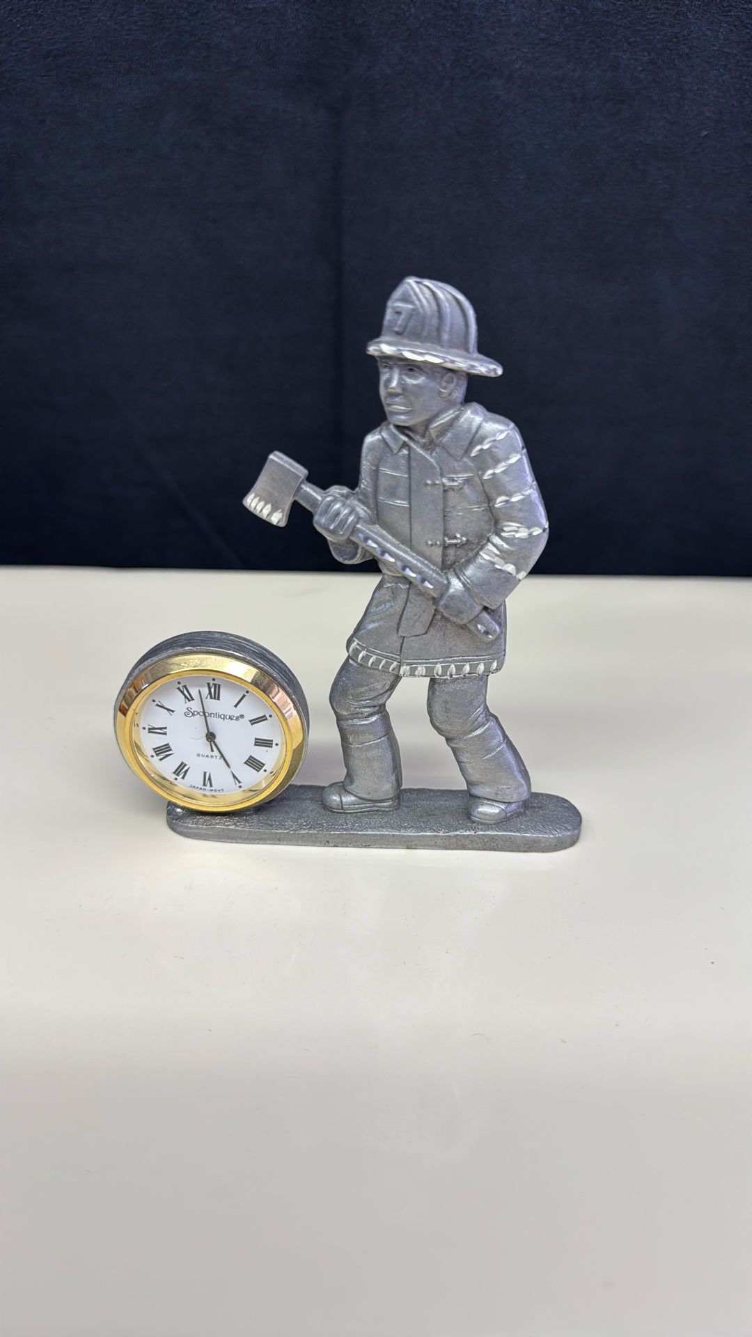 Pewter Firefighter Desk Clock