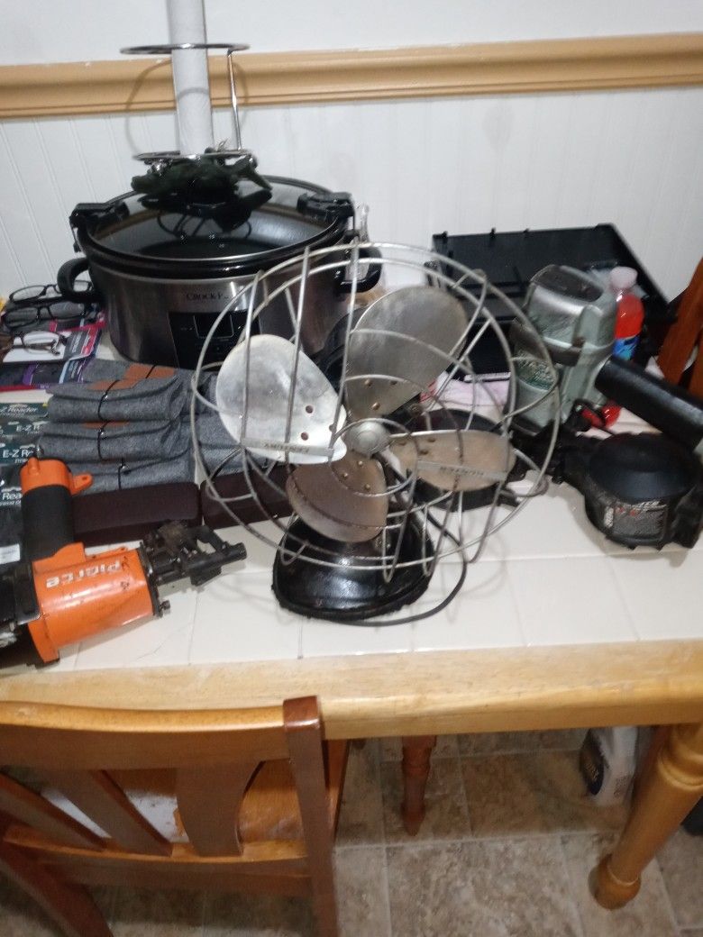 Works fully functional 1930s fan that works hunter brand fulton NY sn# e06515 four blade nickle plate fan nice all original sways back and forth cranks air great