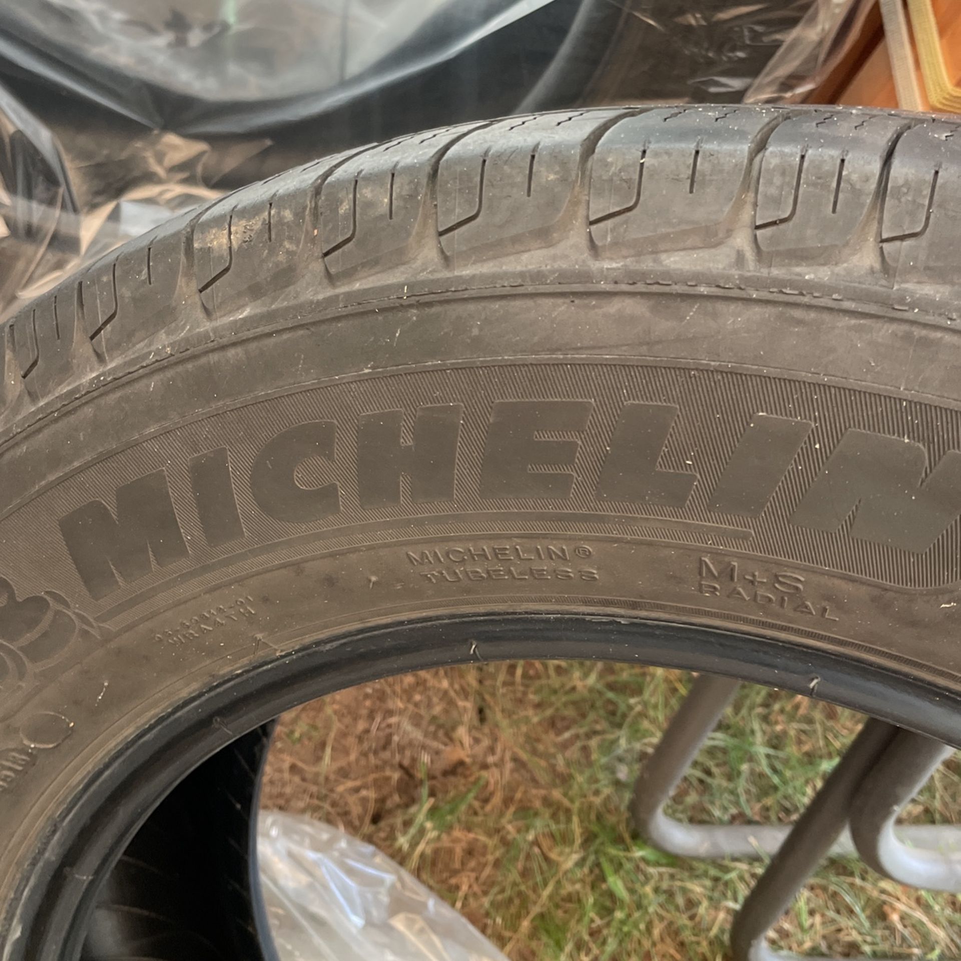 Two Michelin tires for sale with Good tread life left. 225/65R 17 $50.00 obo