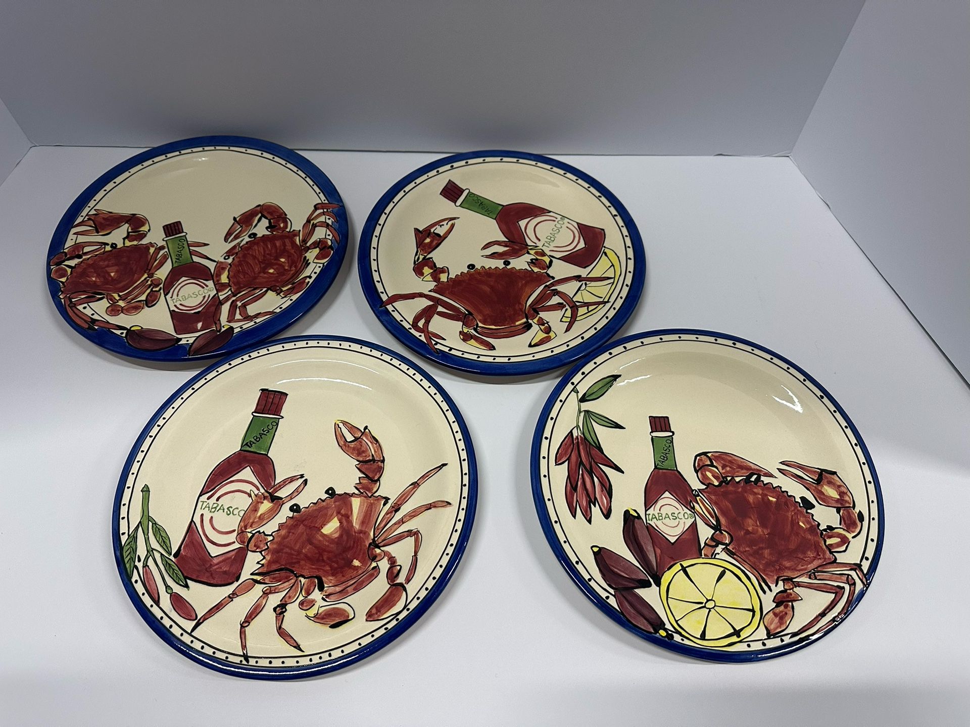 Never been used hand painted tika dinner plates with Tabasco. Look at back of close up, super cute secret donkey on backš„° These are rare, canāt find one like these much less a set. Highly collectible, each plate very different. Like new condition, no cracks chips or crazing. There are pictures and sold as is. Local pickup $125 in Houston heights