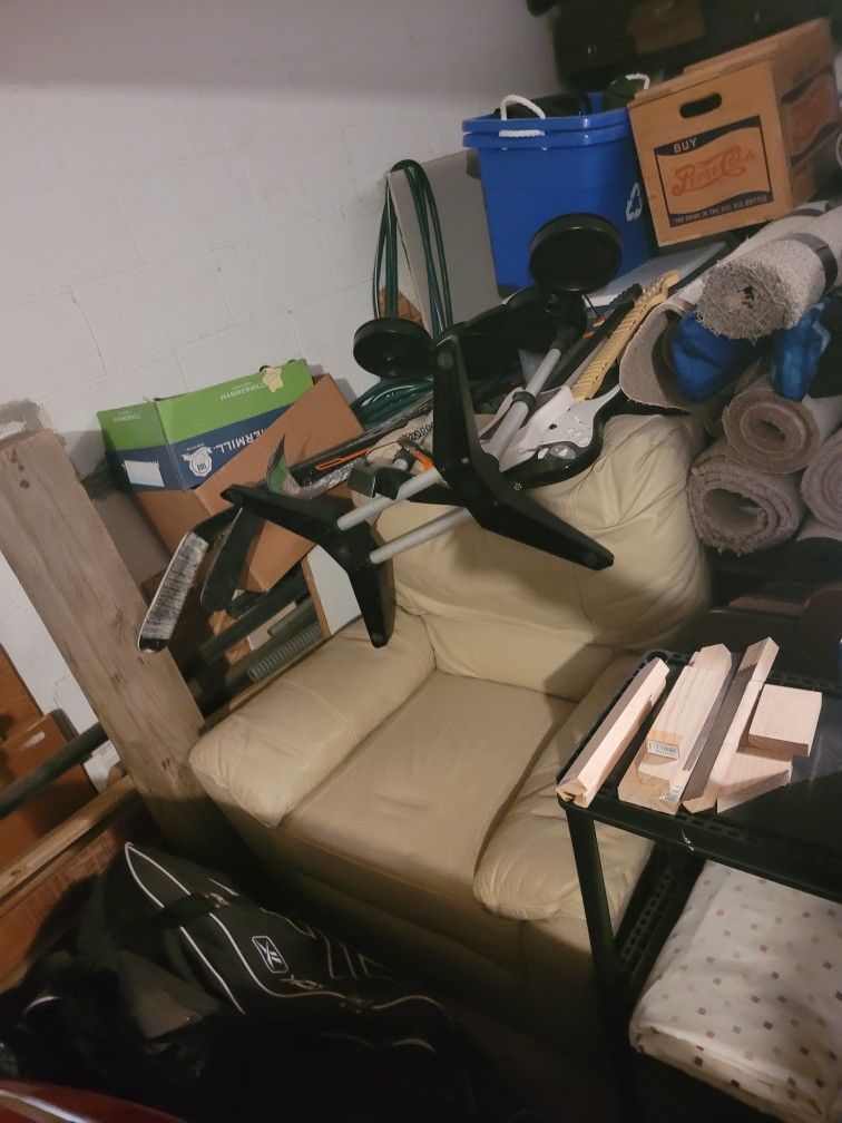 Leather recliner. Having an issue getting it to recline but should be an easy fix. Material in great shape, very comfortable.