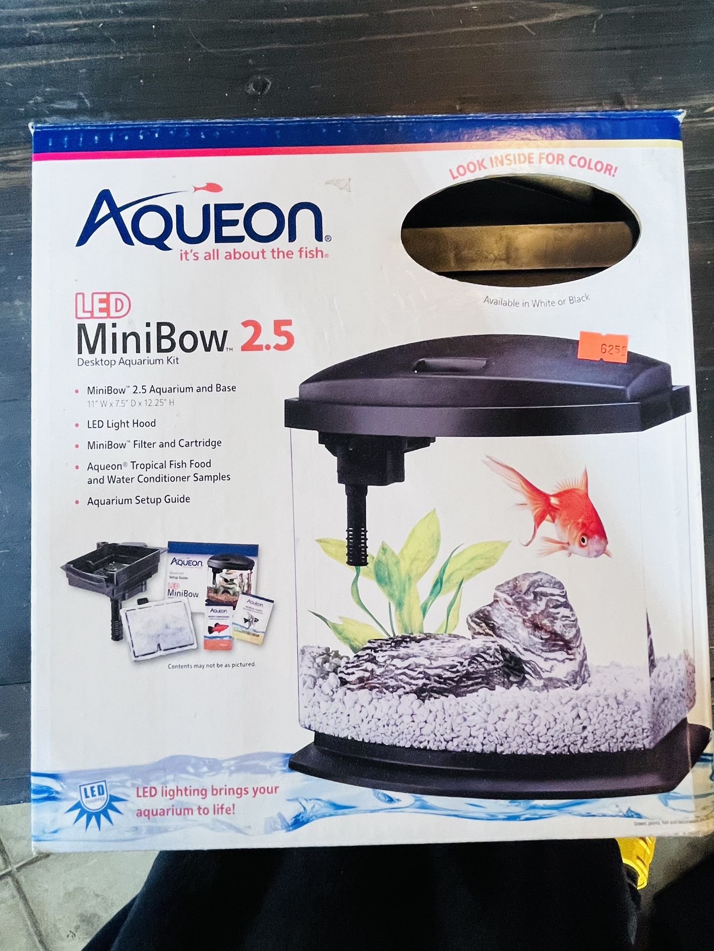 Aquinon Mini Bow Fish Tank With Led Light And Warmer