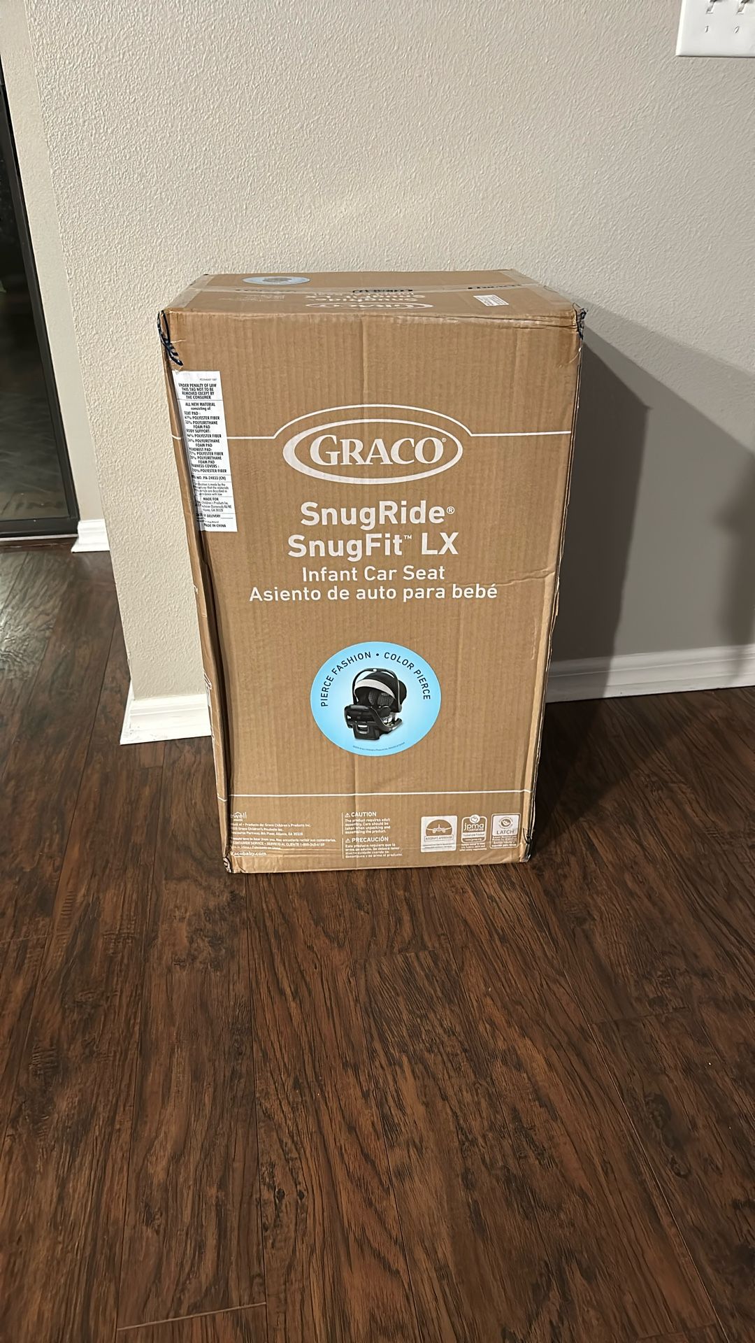 Brand new graco snugride fit lx infant car seat retails for $230. In box never opened. Color pierce. Faa approved for aircraft, the car seat weighs 10.5 lbs.