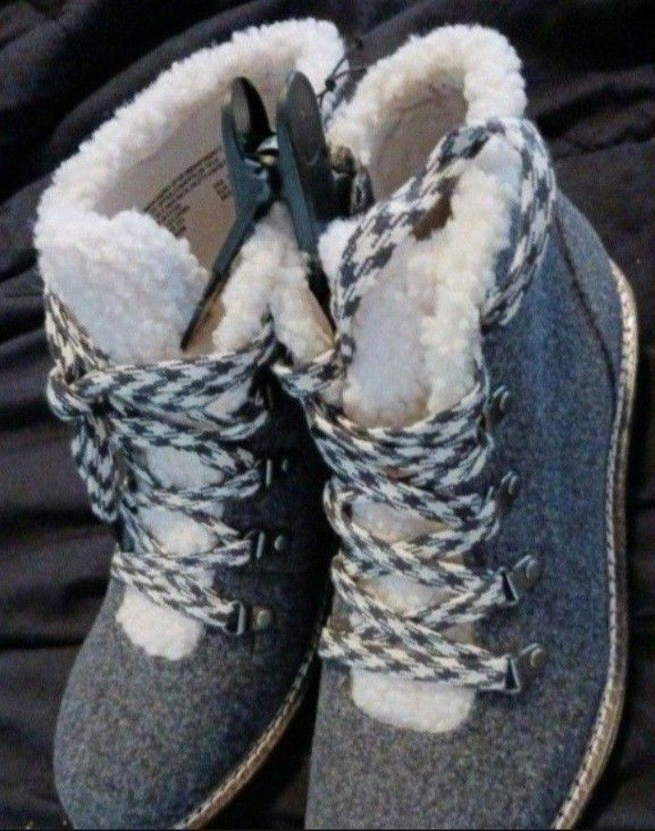 Madden NYC Women's SIZE 11 Gray Flannel Hiker Wedge Faux Fur Lace Up Winter Boots NWT