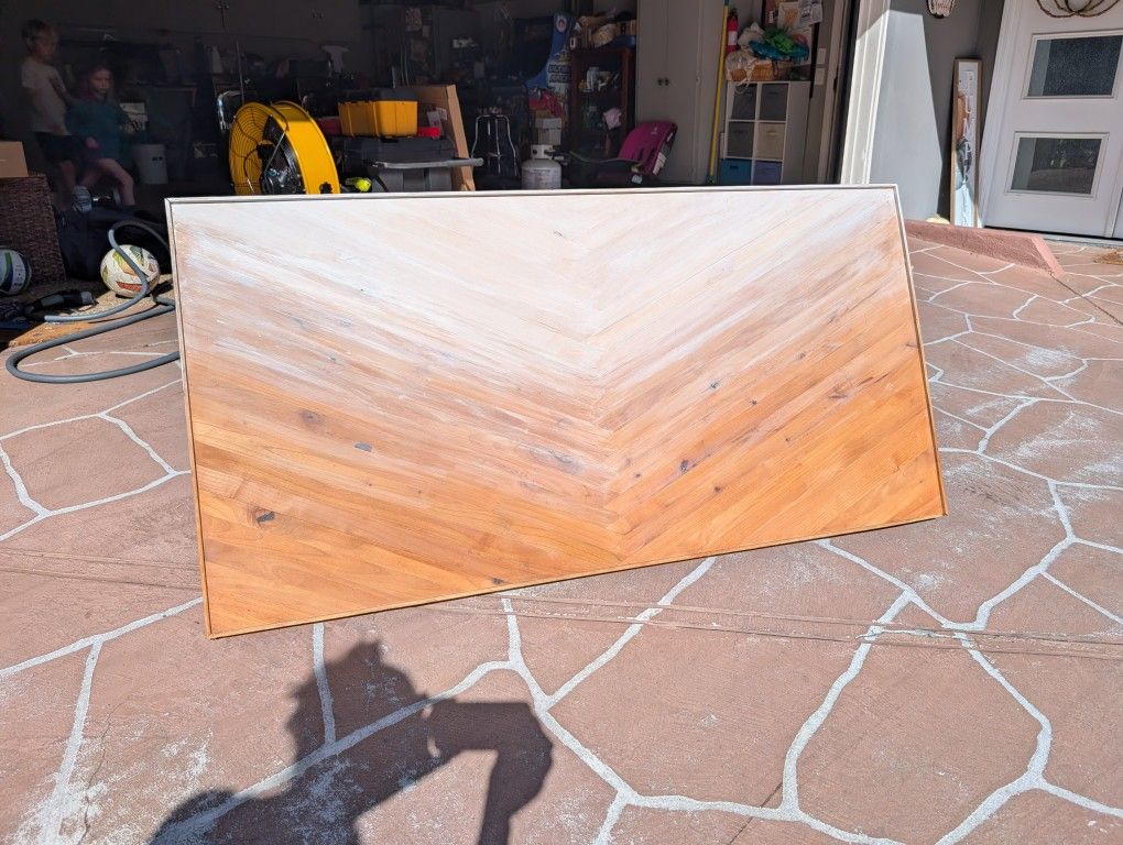30" x 60" wooden head board Hang via French cleat to the wall Etsy purchased in 2017. Survived moving out of country and back. Two small pieces of wood chipped (in photos).