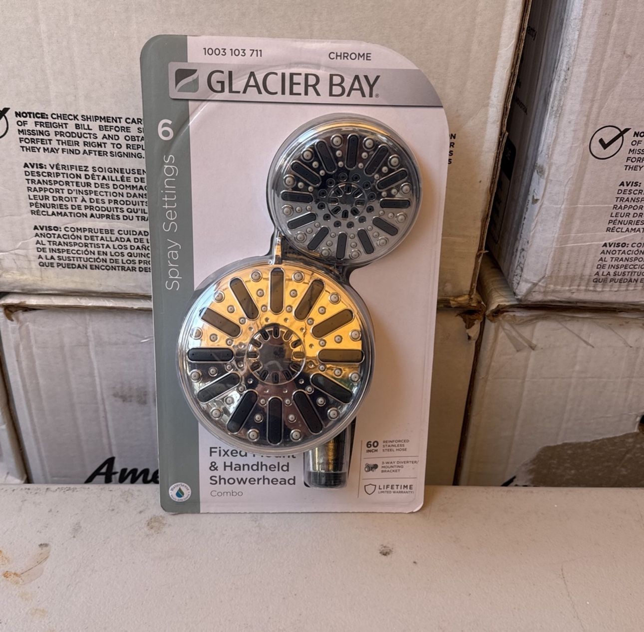 Glacier Bay 6-Spray 5 in. Dual Wall Mount Fixed and Handheld Shower Head 1.8 GPM in Chrome $25 cash firm price