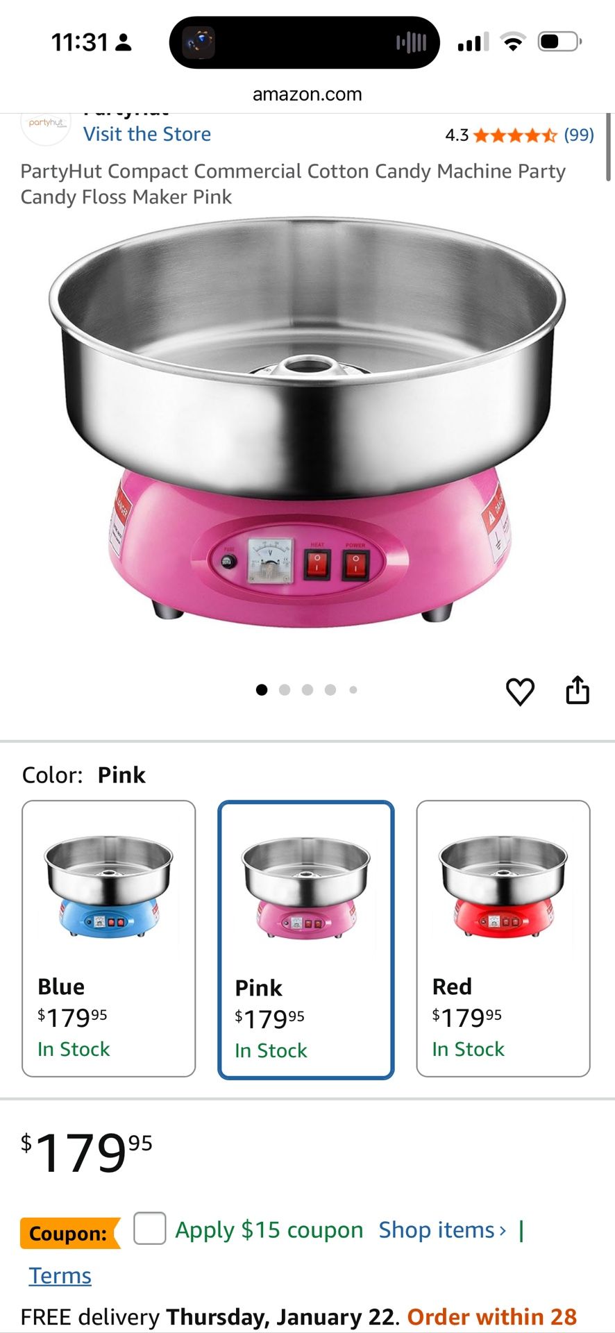 PartyHut Compact Commercial Cotton Candy Machine Party