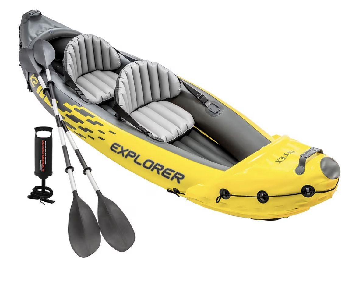 Intex Explorer K2 Kayak, 2-Person Inflatable Kayak Set with Aluminum Oars and High Output Air Pump