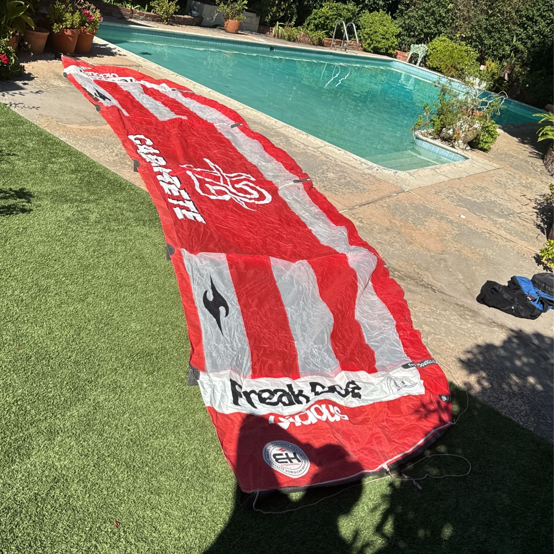 All the bladders hold air and were replaced recently. This is for just the kite. There is no harness kite only with bag. cabarete 12 meter SLS freakdog kites