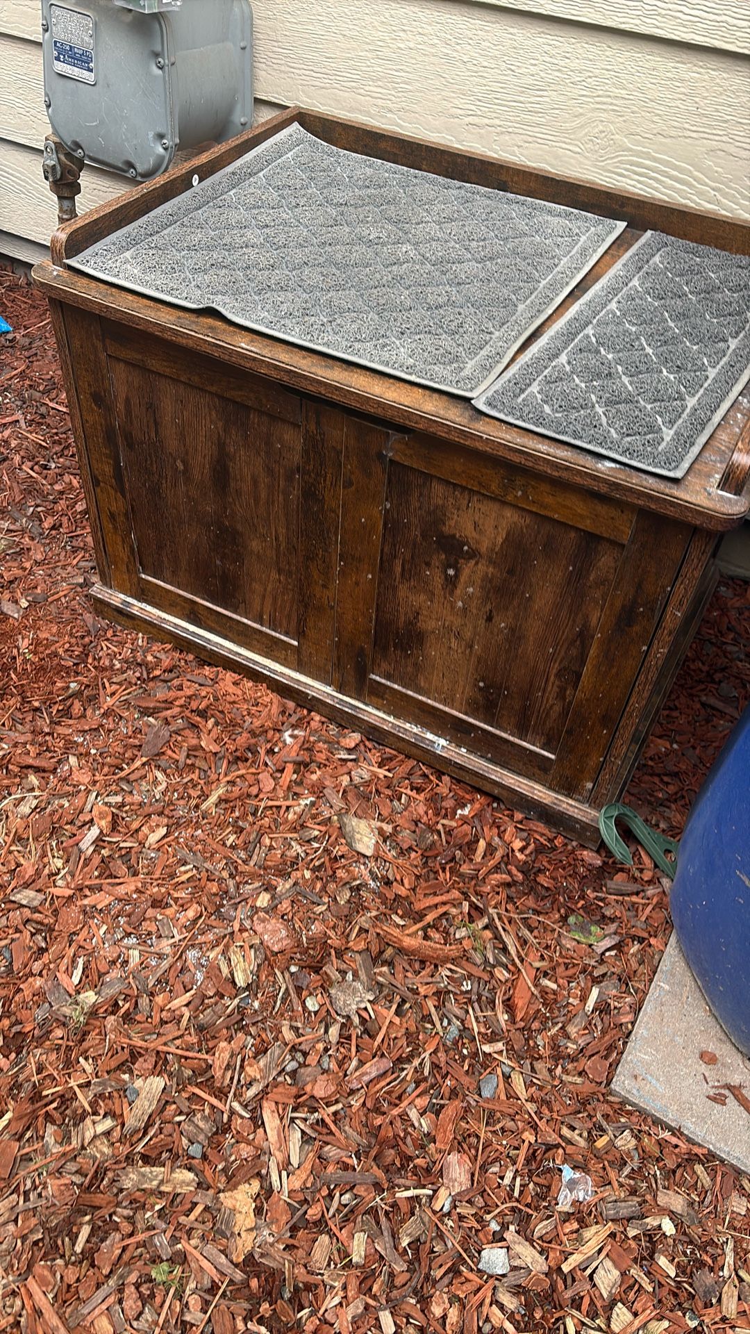 Cat box to hide litter box ( fake wood) - very used, needs cleaning and possibly fixing