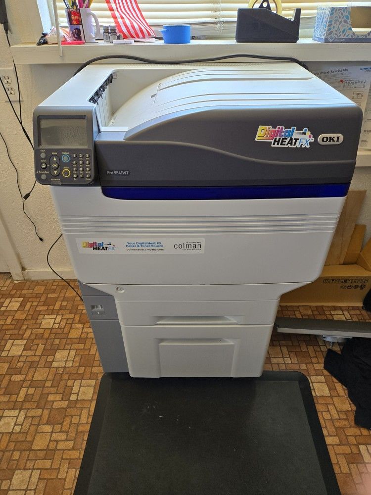 Works great! Dont really have time to make shirts like I use too and look to down size. Printer was purchased at $15,000. Welcome to come and test it out. Also... I have posted some shirts that I created with the printer. They do not come with the printer. Custom tees