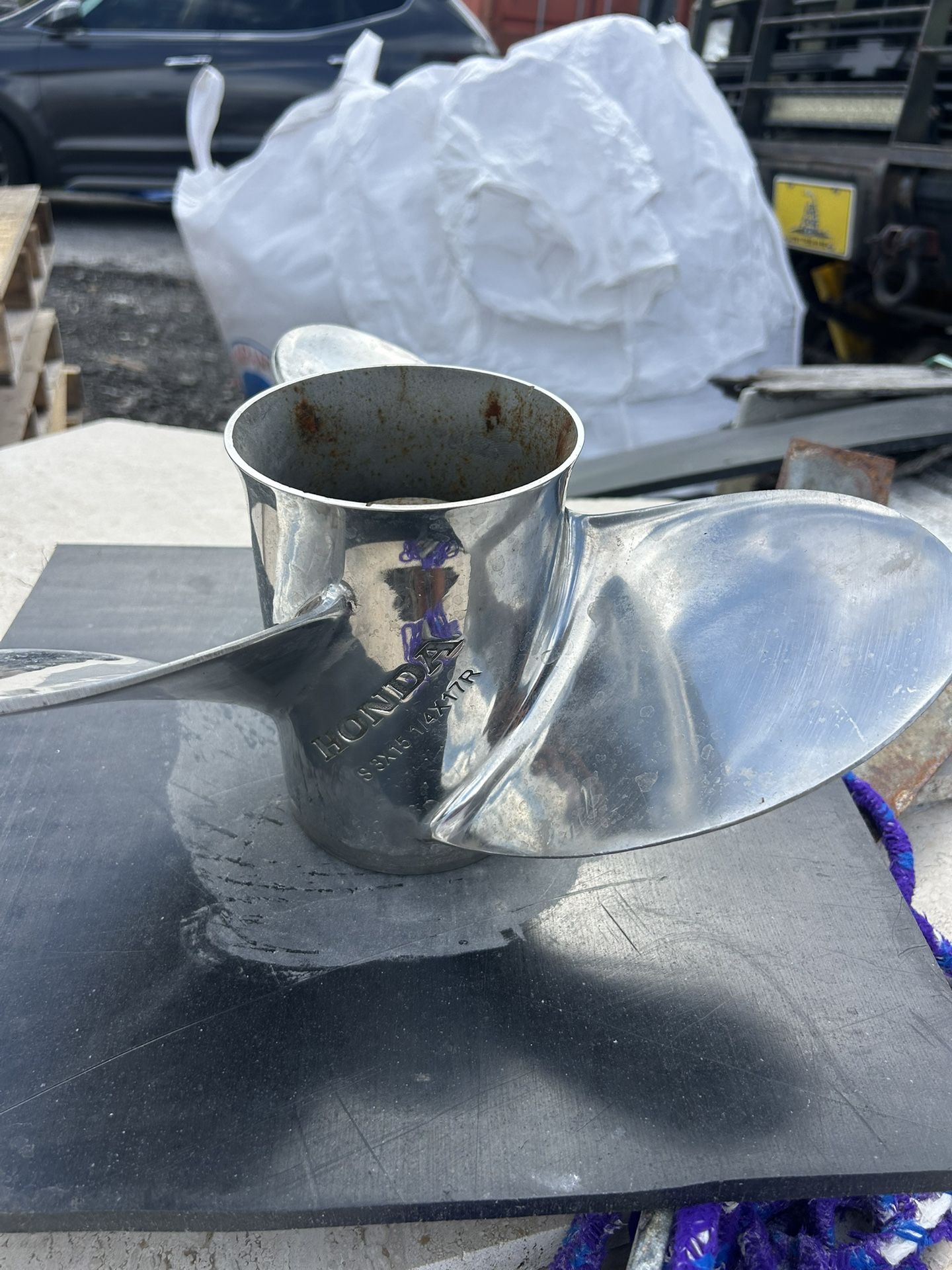 Honda prop made by Solas. 15 spline will fit Mercury and other brands also