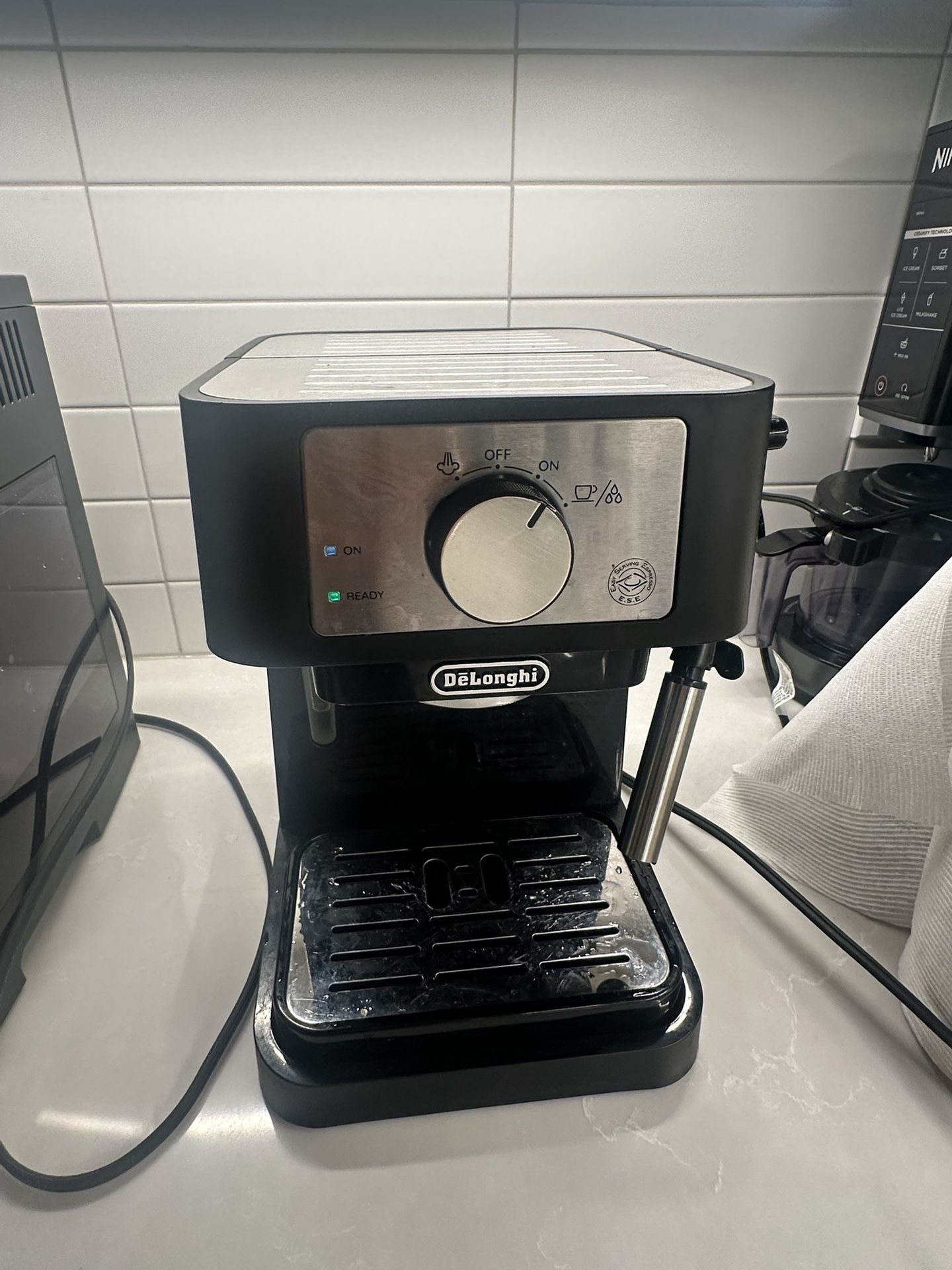 Delonghi Espresso Machine + Coffee Grinder, Tamper, Basket