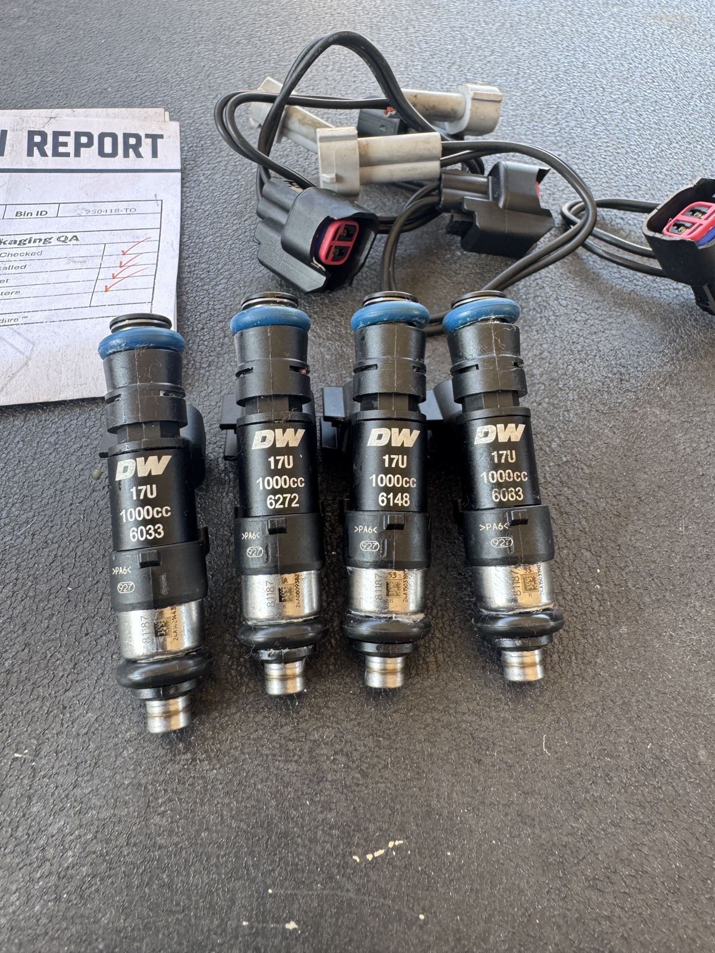 DEATSCHWERKS 1000CC Injectors brand new.. Matched set of 4 1000cc Injectors for Hyundai Genesis Coupe 2.OT 2009-2012, Subaru 2.5RS 99-03, Sentra QG18DE 00-06, Sentra QR25DE 02-12 LOCATED IN THE CITY OF COVINA