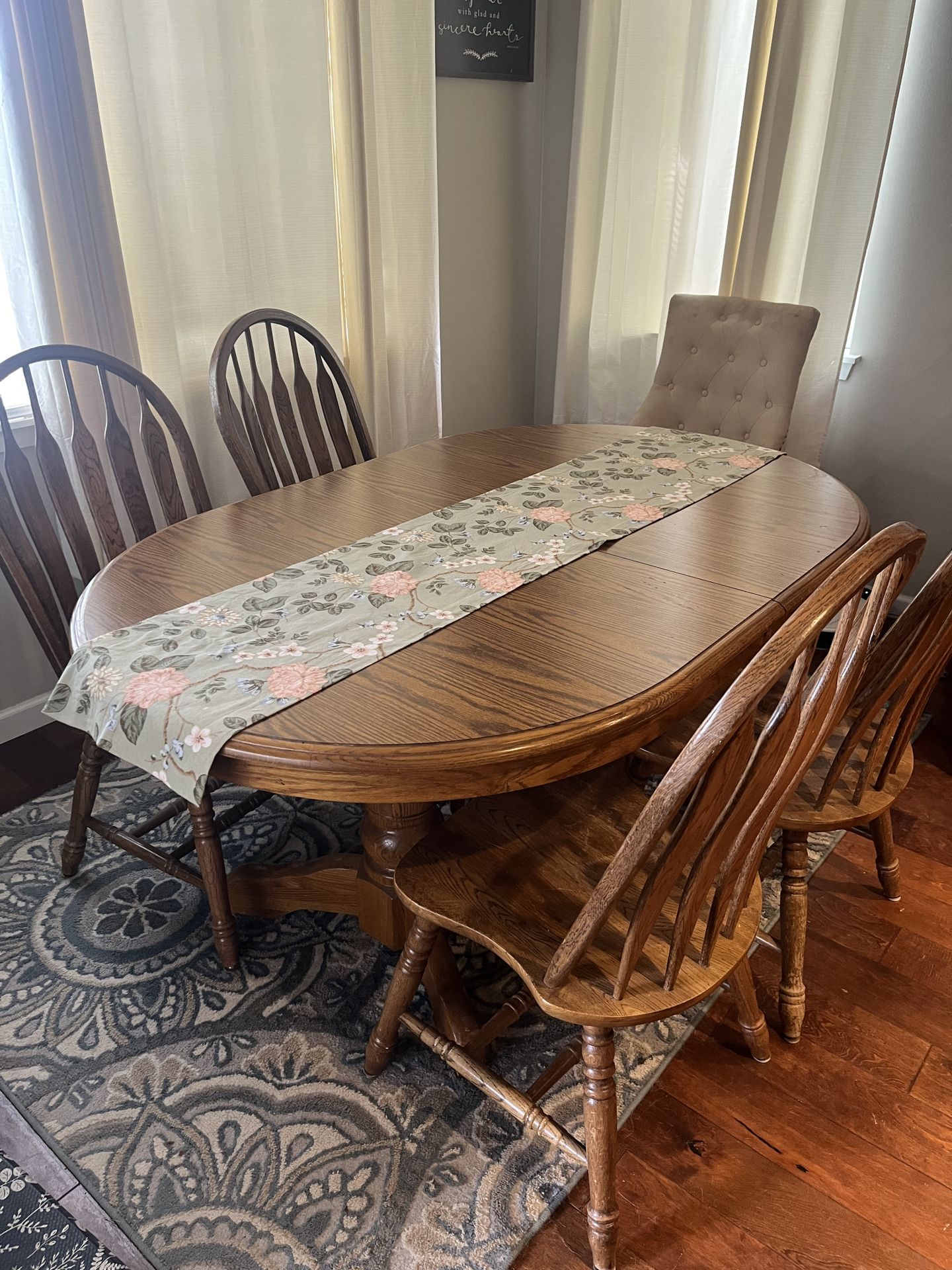 Wood table with leaves. Very study. Comes with 4 chairs. Asking $80 obo