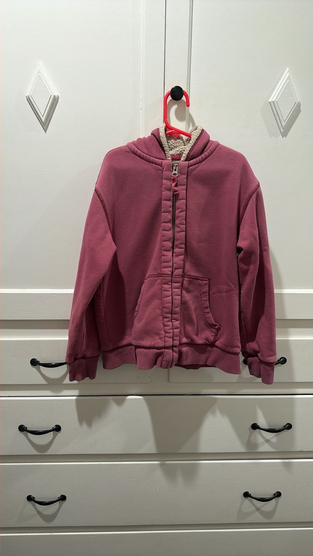 Perfect zip hooded sweatshirt for cool weather. Size 10-12. Maroon color