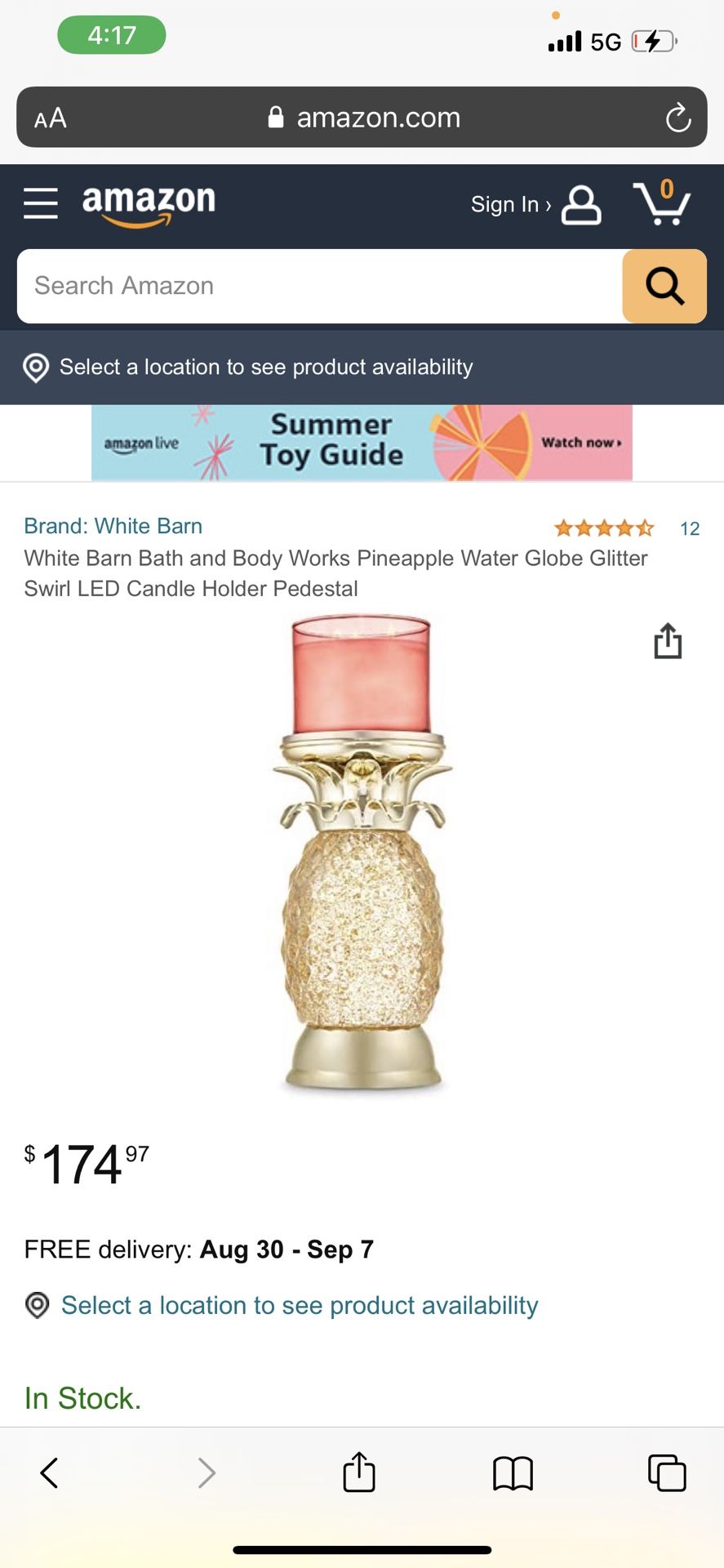 Bath And Body Works Pineapple Globe