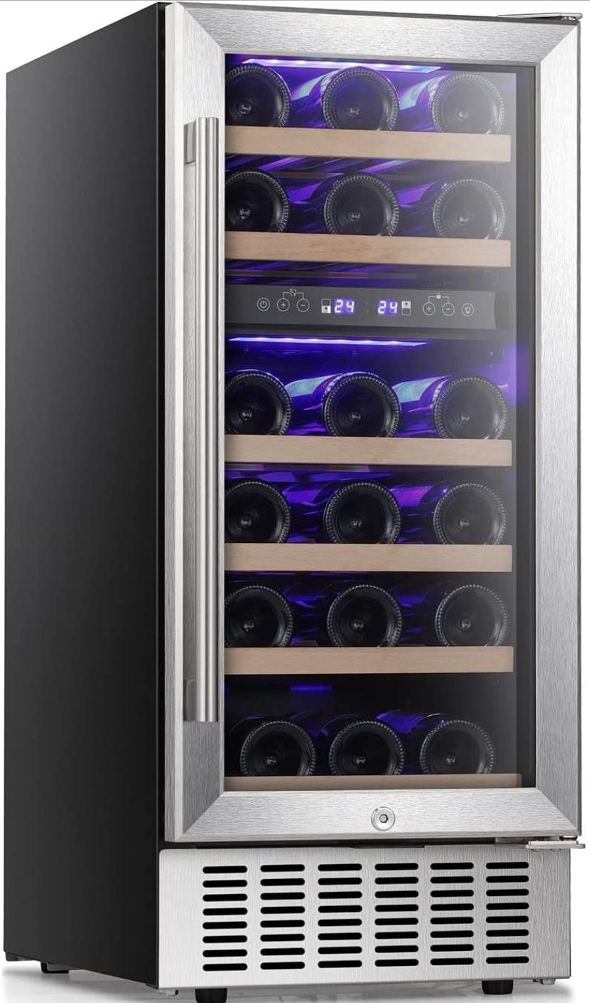 CASH ONLY! Antarctic Star 15" Wine Cooler Under Counter Beverage Refrigerator Beer Mini Fridge 28 Bottles Dual Zone Built-in Freestanding Stainless Steel Double-Layer Tempered Digital Temperature Memory Function Glass Door
