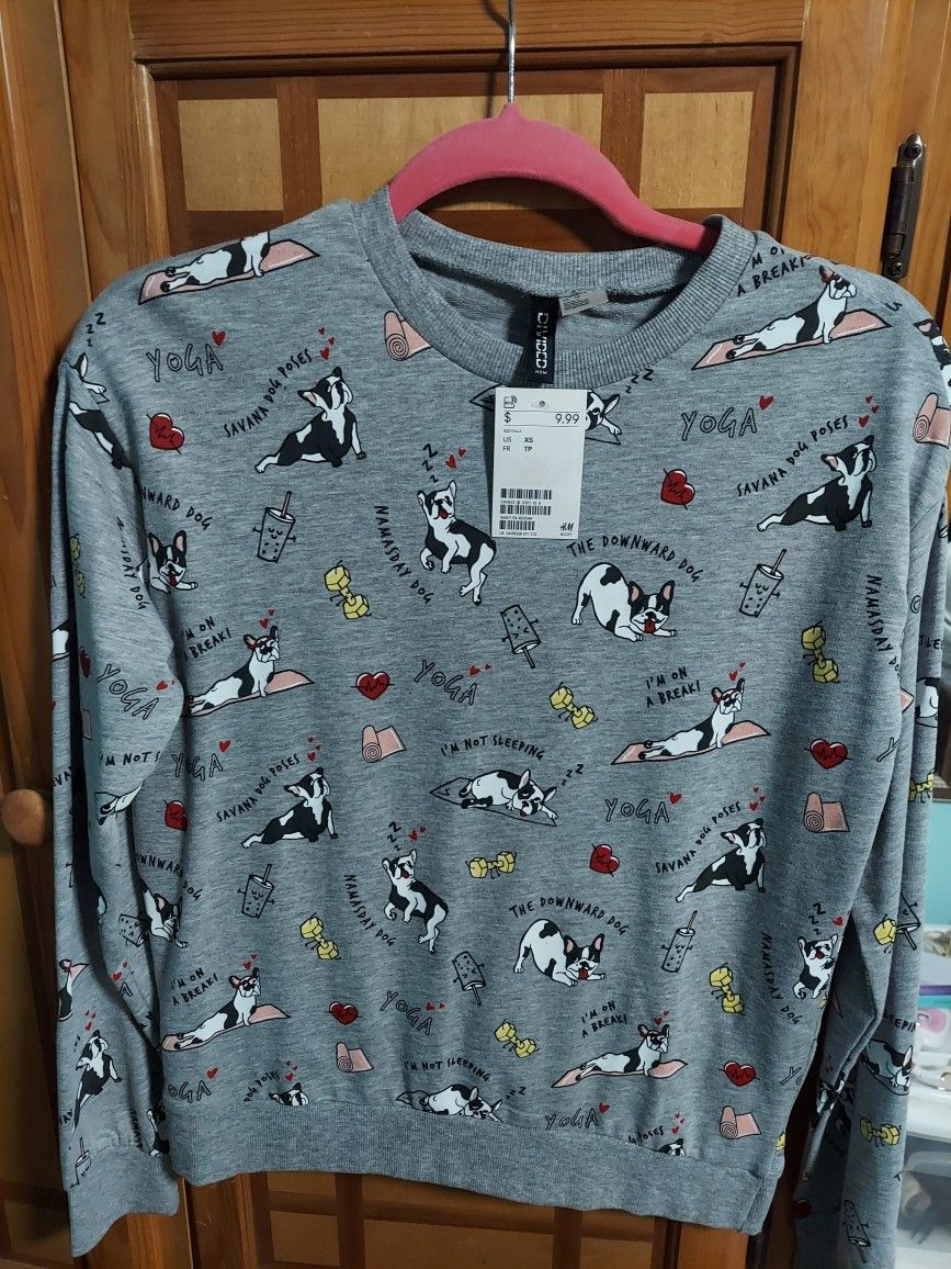 Brand New With Tag H&M Boston Terrier Yoga Puppy Shirt/Sweatshirt
