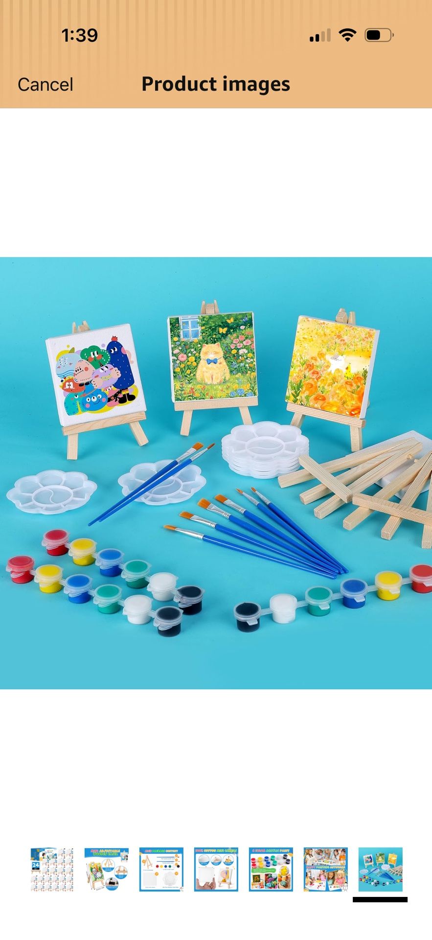 14 Set Mini Acrylic Paint Kit, Mini Stretched Canvas with Easel, Valentines Day Gifts, Acrylic Paint Strips, Paint Palettes, Painting Brushes, Ca