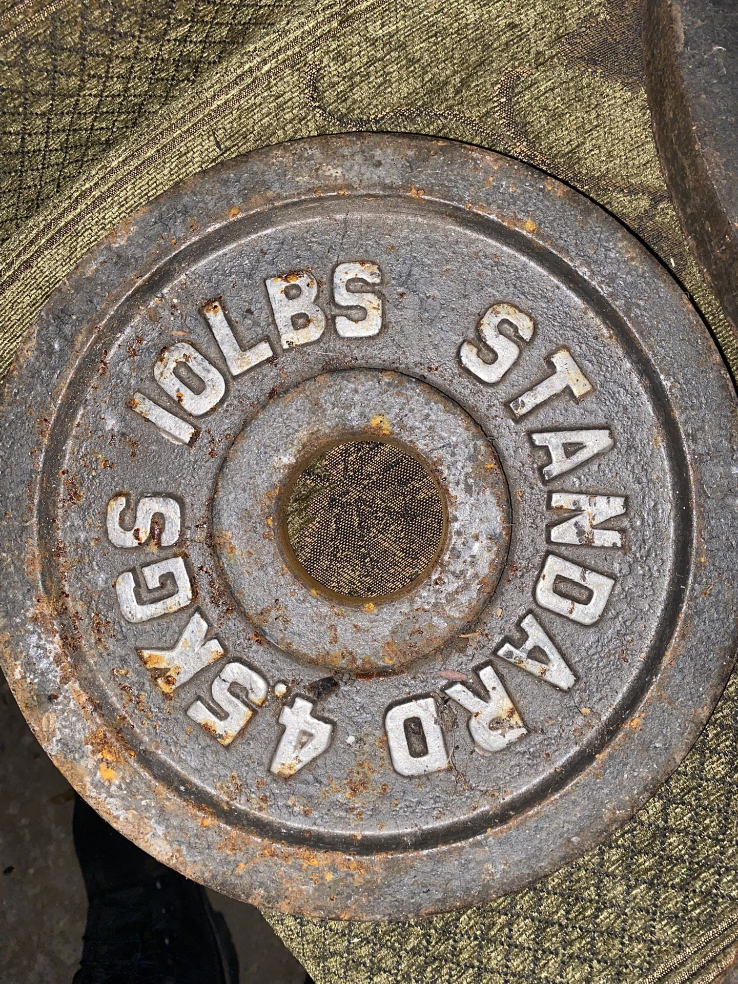 1 Standard 10lb Barbell Plate & 1 Standard 5lb Barbell Plate Pre-owned Rusted Still Works Great