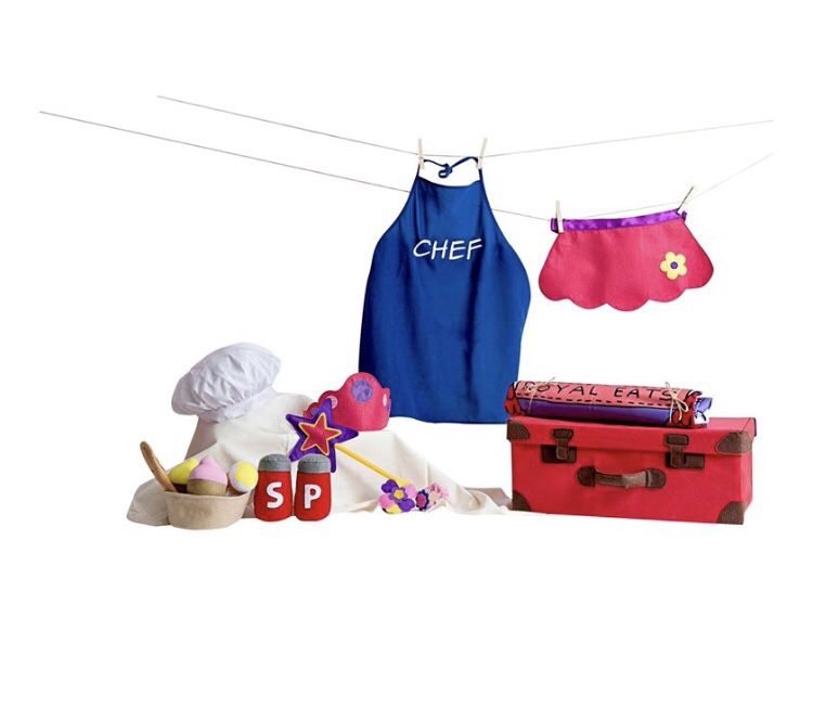 Your little one’s imagination will run wild with this Props in a Box- Princess and Chef Movie Maker Kit. This kit comes with 17 props & costumes held within a vibrant fabric storage trunk. The handcrafted fabric props, costumes, and backdrops encourage self-expression and imagination while the uncommon combination of princess and chef keeps kids entertained for hours. Use the downloadable Movie Maker app to add special effects for video memories that last a lifetime. Fun for ages 3+ Kit Includes: - 1 Old-fashioned fabric case with felt carrying handle and Velcro closure - 1 Royal Eats backdrop: 55" x 42" - 1 princess skirt - 2 crowns - 1 magic wand - 2 regal bracelets - 1 chef apron - 1 chef hat - 1 pair of salt & pepper shakers - 1 egg - 2 cupcakes - 1 ice cream cone - 1 mixing bowl - 1 mixing spoon - a downloadable Movie Maker app to make videos with special effects Gently loved, excellent condition $17 Venmo or Cash Coordinated pick up by QFC off Holman 98177