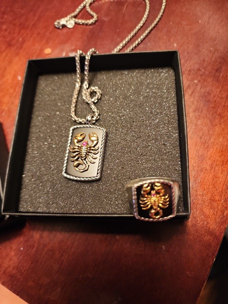 Mens Scorpion Ring And Scorpian Necklace