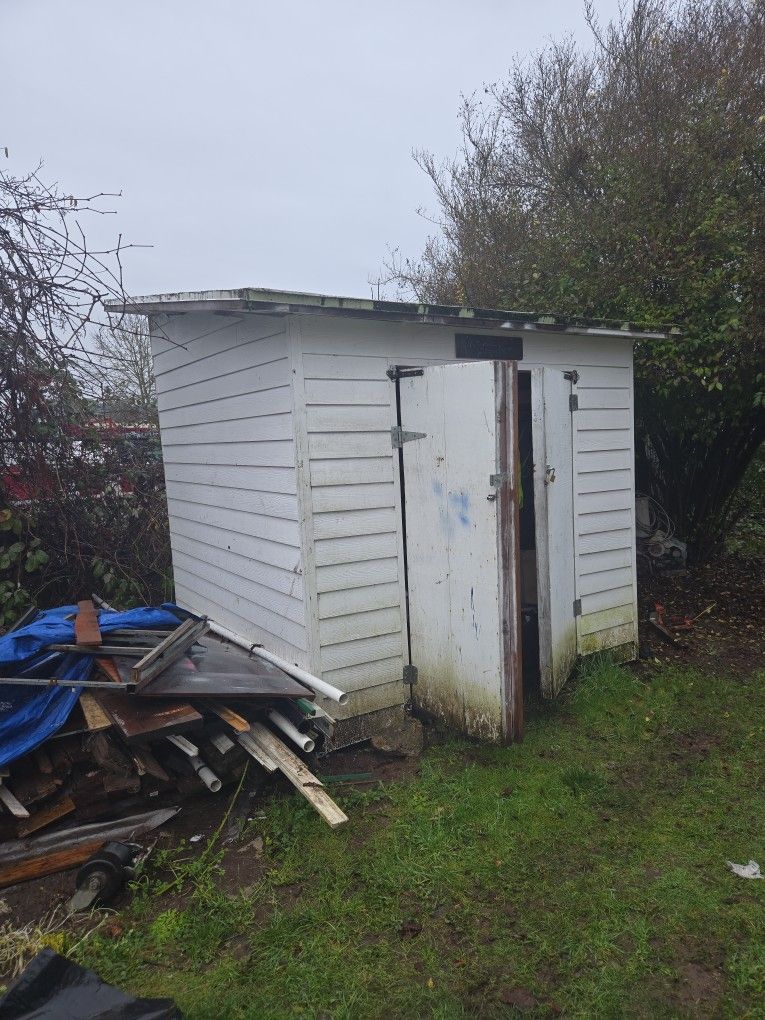 It's nice and can be put on a trailer and moved... there's drywall on the walls and shelves built inside it 500 bucks and its yours it doesn't leak