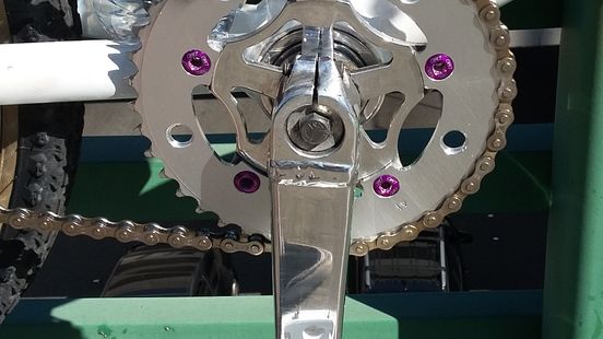 These are early model wide spline single pinch unstamped technique cracks in 186mm. These have been on my Kasten CR24 cruiser for the past 4 years & have never gave me any problems, there is however a small issue with a tiny crack on the pinch next to the bolt. These are very rare & nice looking, I took them off & are now for sale. Be perfect for show bike. Show quality polished aluminum cranks. Price is $250 cash for the cranks and powerdisc only! "Kasten not for sale."