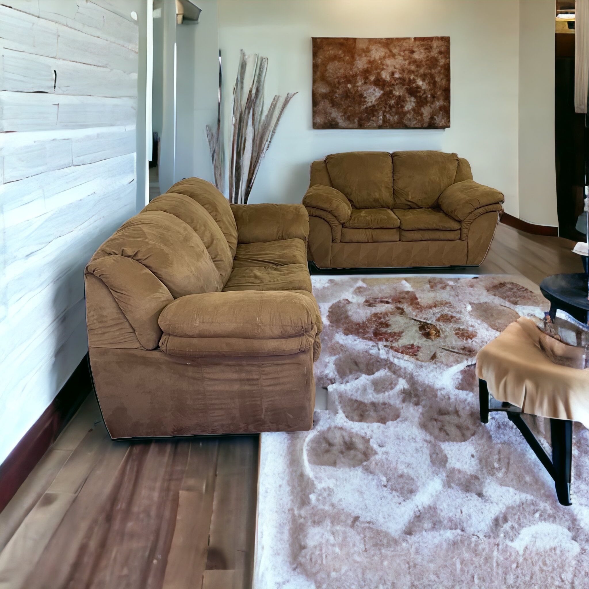 Order and schedule your delivery at OneUpFurniture(DOT)com Over 100 sets to choose from We are trusted and have 200+ reviews on Google. Item Notes: Good overall condition No rips or tears, minor marks throughout. Scratches on the corner pictured as best as possible *set has no legs* Previous owner had pets Seat cushions are removable and washable, back cushions are attached Brown Very comfortable Measurements: Couch: 90” Loveseat: 69” Height: 33” Depth: 38” Seat Height: 18.5”