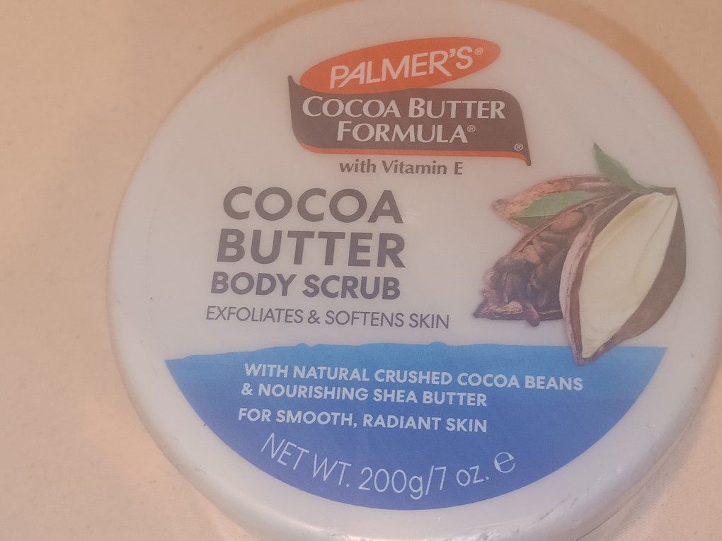 I'm selling a Palmer's Cocoa Butter Body Scrub. It exfoliates and softens skin with natural crushed cocoa beans and nourishing shea butter for smooth, radiant skin. Smells delicious. Net weight: 200g/7 oz