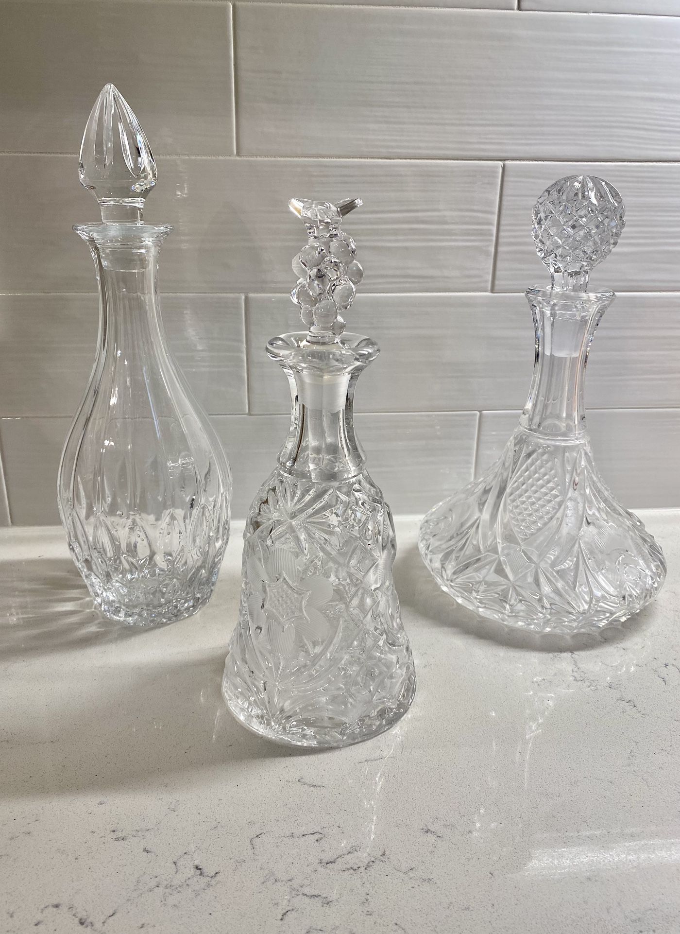 Vintage Decanter Set Of Three Crystal Hand Cut