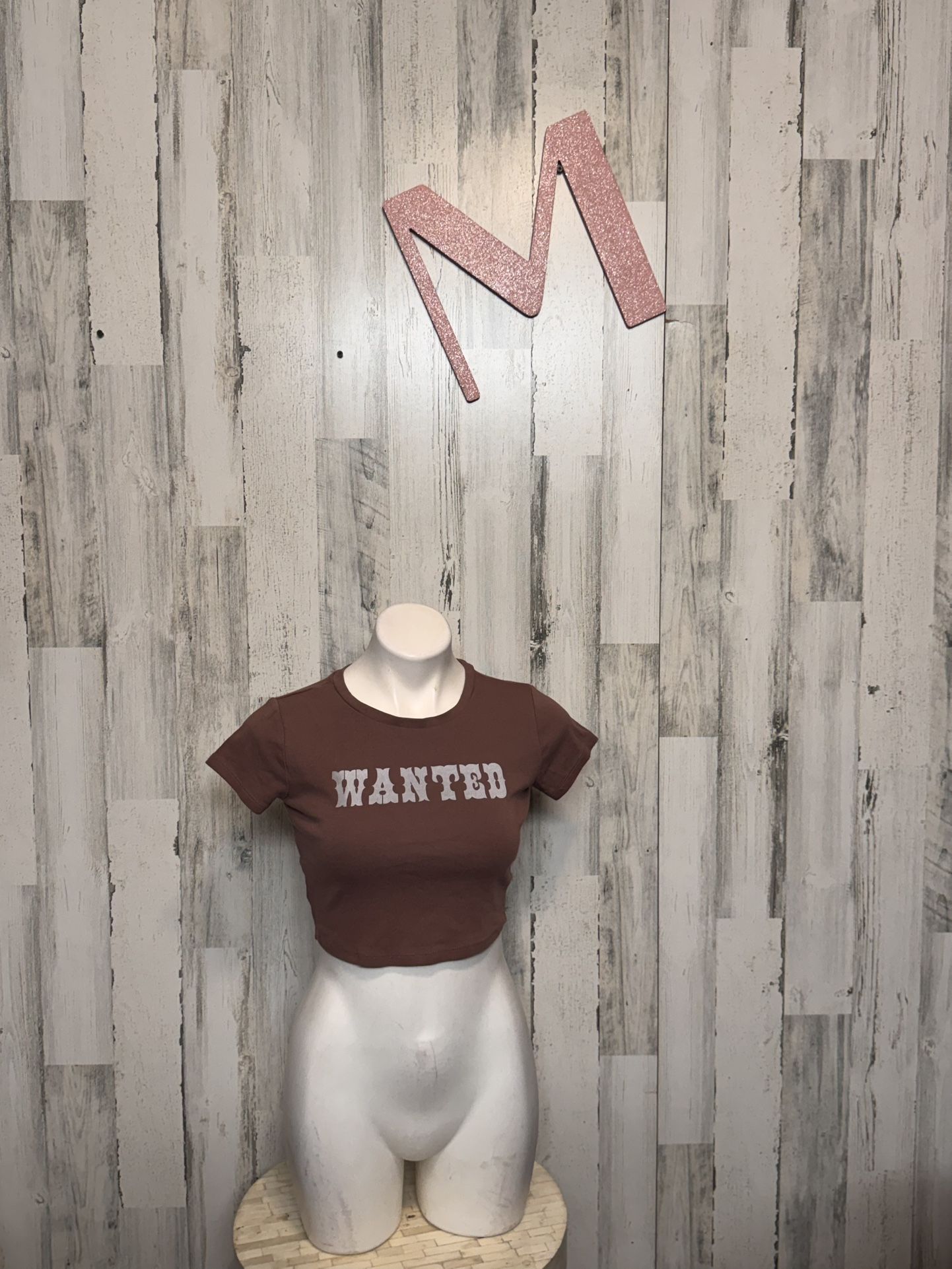 Garage Brown Wanted Graphic Cropped Tee Size Medium