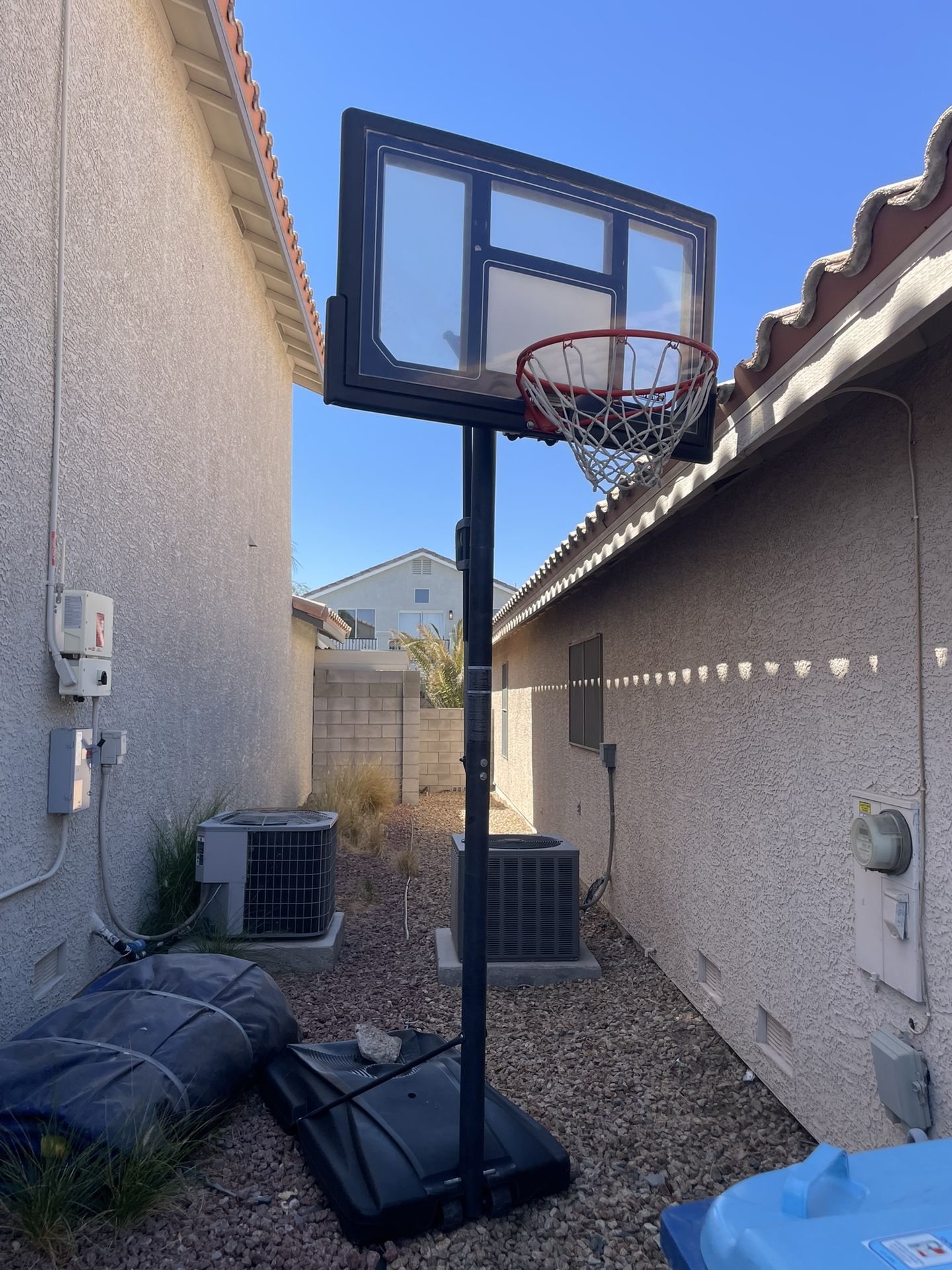 Portable regulation basketball hoop. In good shape, but the base has a slow leak. Son away at college no longer needed.