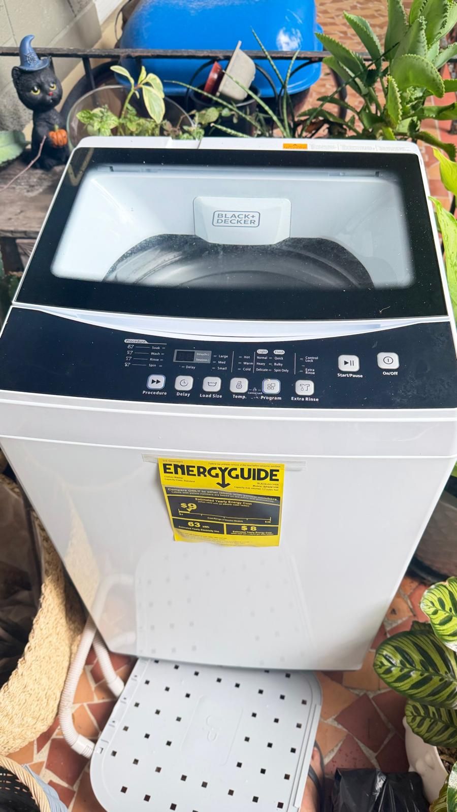 Selling a Black+Decker top-load washing machine in excellent condition. It was purchased just over a month ago and is practically brand new. The unit is complete and comes with all necessary hoses for Hot, Cold, and Warm water connections. Note: There are some minor cosmetic scratches on the inside rim (see photos), which are strictly aesthetic and do not affect the machine's perfect performance. Features & Specs: • Model: BPWM16W (1.6 Cu. Ft. Capacity). • Age: Slightly over 1 month old. • Connections: Includes all hoses for Hot & Cold water. • Design: Lightweight and compact, yet a standard stationary model. • Cycles: 6 Program selections (Normal, Quick, Heavy, etc.). • Load Size: 3 Water levels (Small, Medium, Large). • Dimensions: Approx. 20.3" x 20.7" x 36.6". Condition: Like new and very clean.
