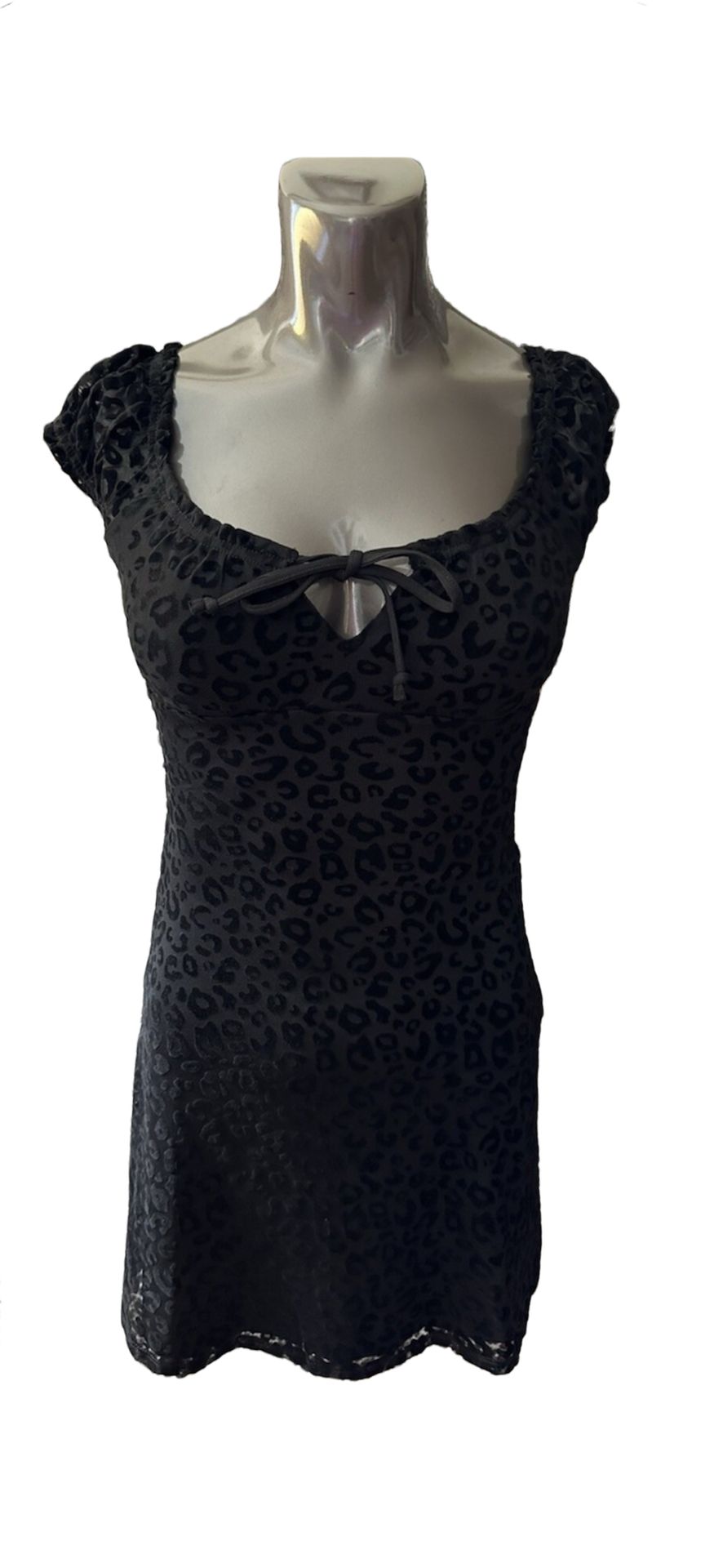 Size small It is designed with short sleeves that can often be worn off-the-shoulder and a scooped neckline featuring a small decorative bow tie. The dress is known for its stretchy, mesh-like fabric, usually a blend of polyester and spandex, with a soft inner lining.