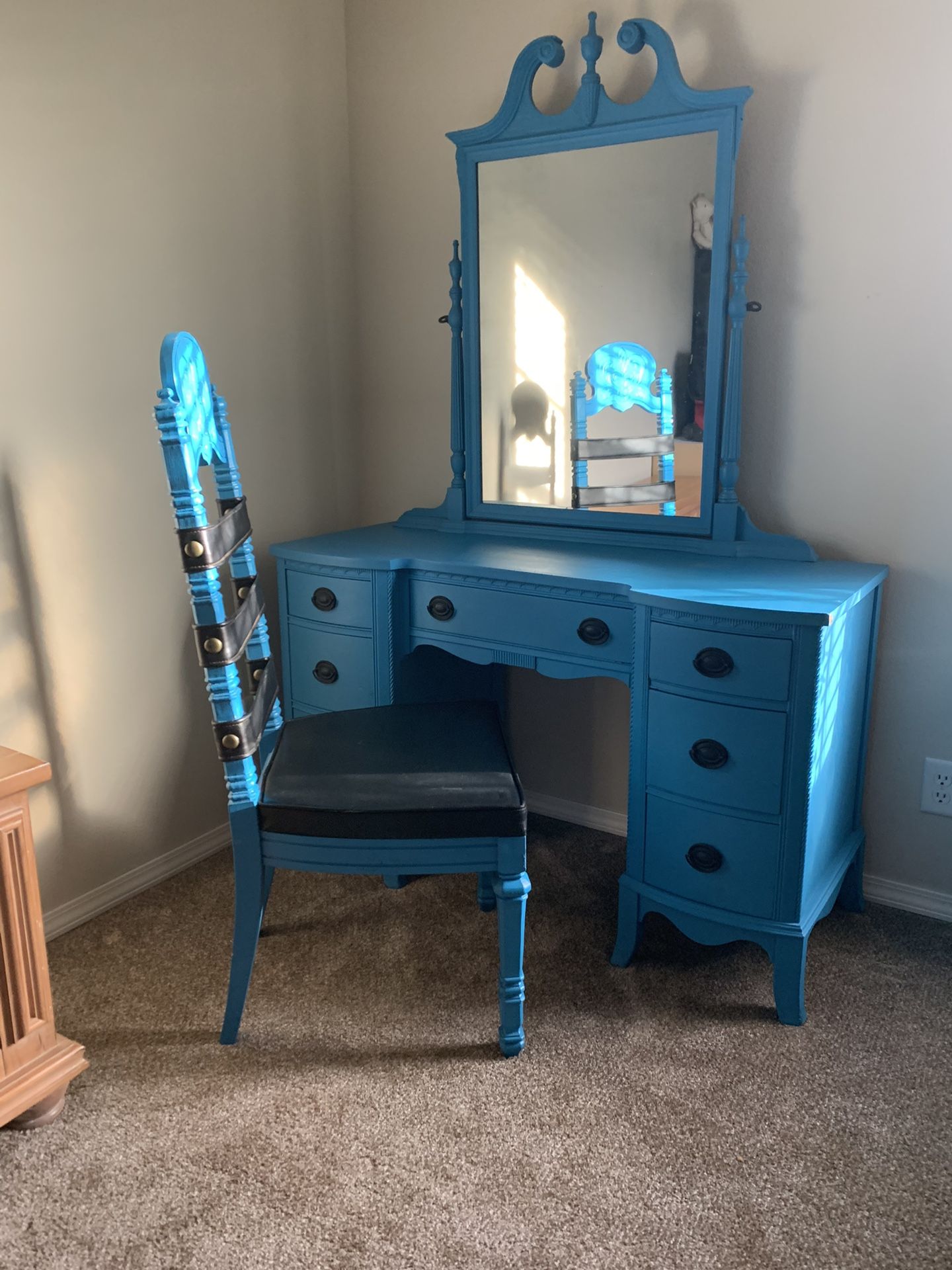 A beautiful set, any girl would love! It’s older, with a lot of character. Enhance your daughter’s room and life with a place to do her work and play!
