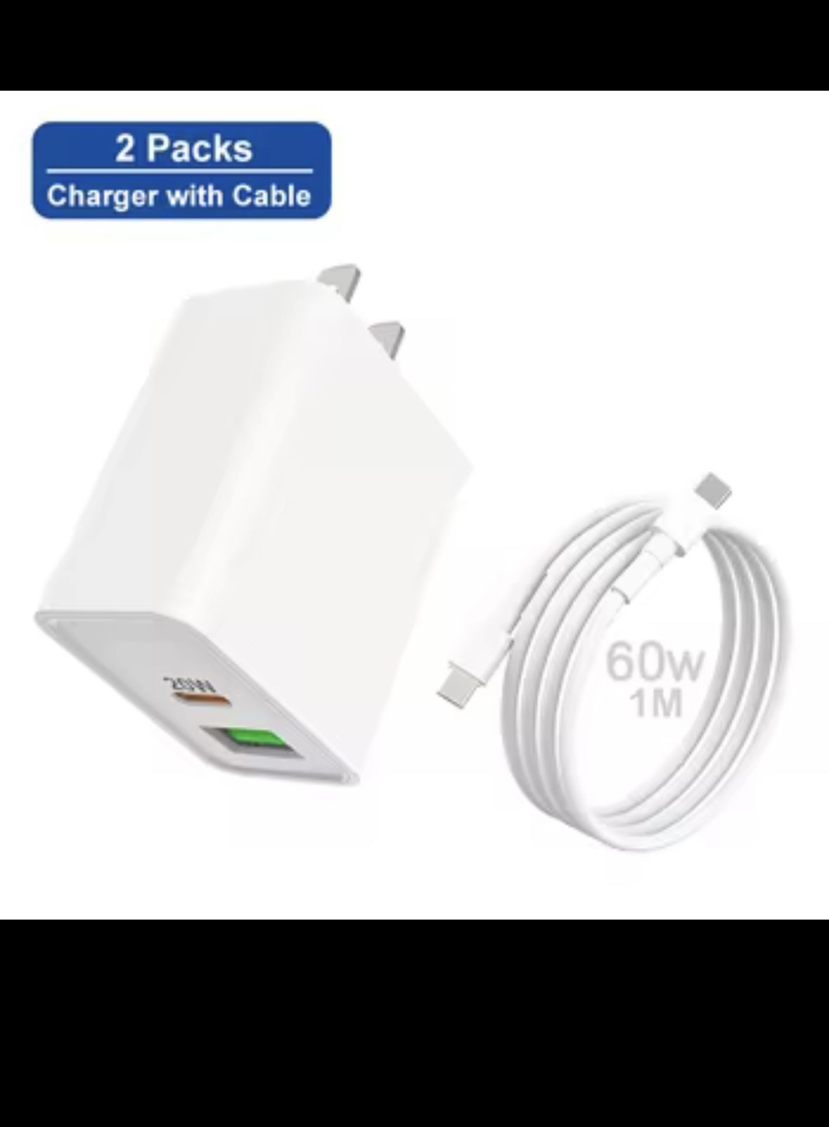 Dual ports USB 20w mobile fast charger with L+ C type cable
