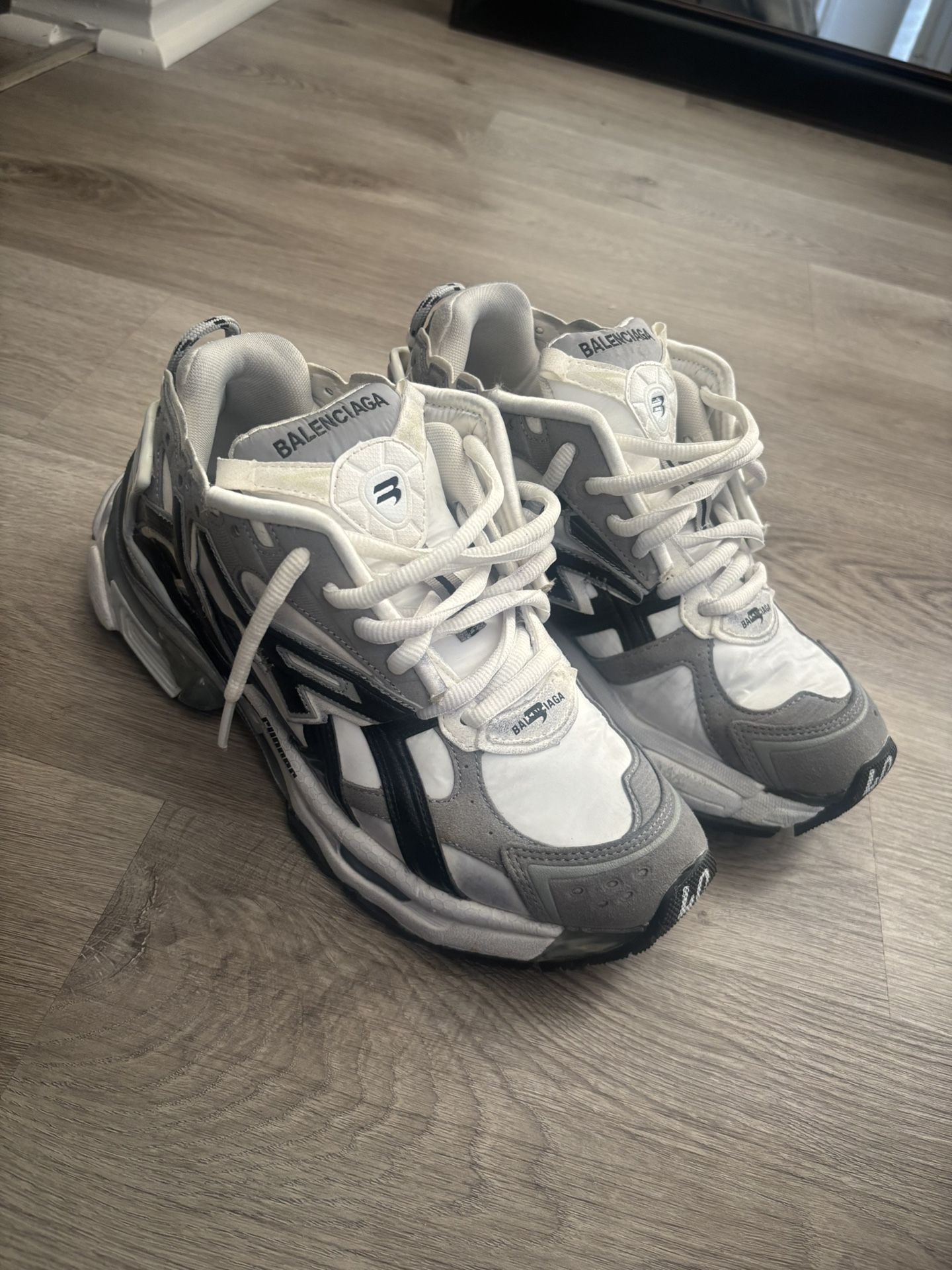 Balenciaga Runner White Gray Black Men's Athletic Sneakers Lace Up Low Top Size 40
