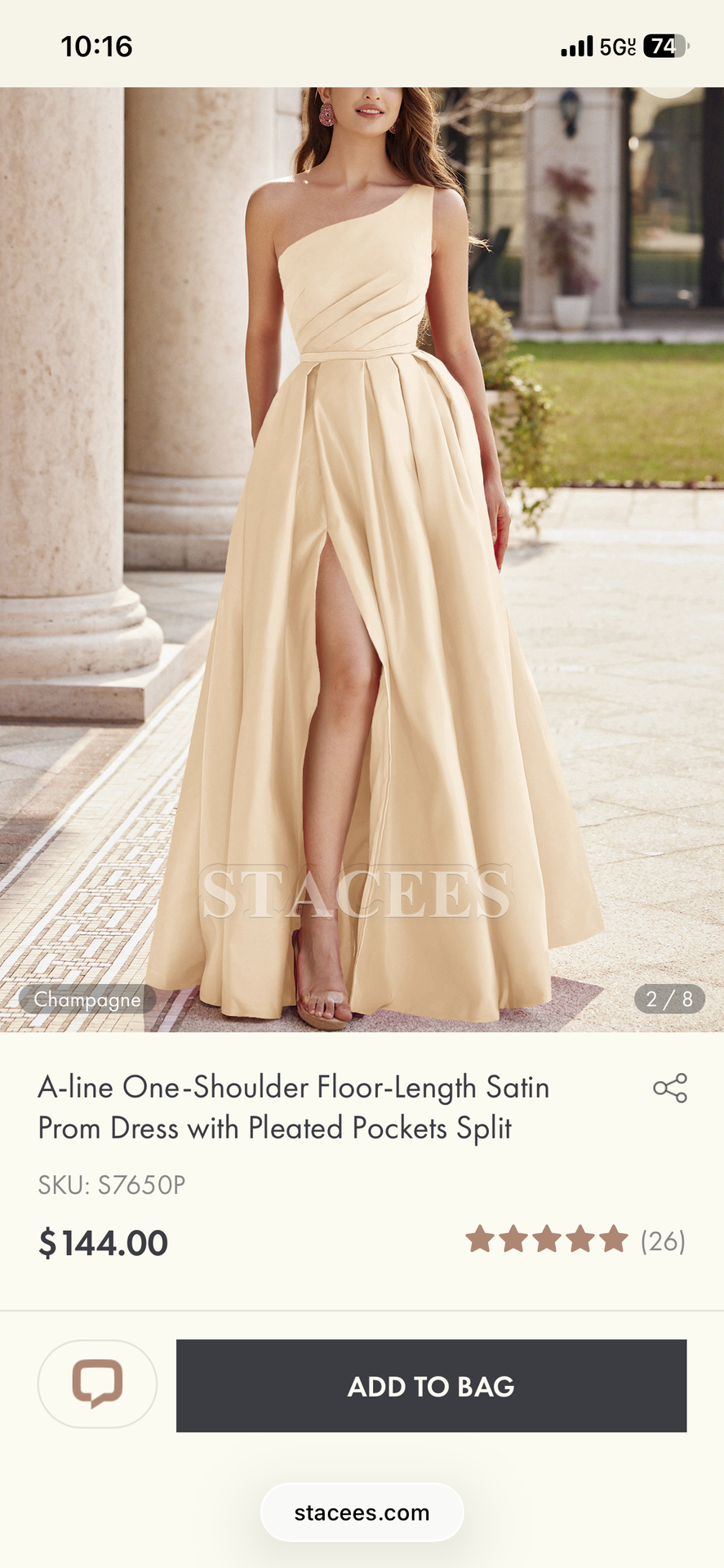 Silhouette: A-line Neckline: One-Shoulder Sleeve: Sleeveless Back Style: Zipper Embellishment: Pleated,Pockets,Split Fabric: Satin Length: Floor-Length Fully Lined: Yes Built-In Bra: Yes Features: Pockets,Right Slit