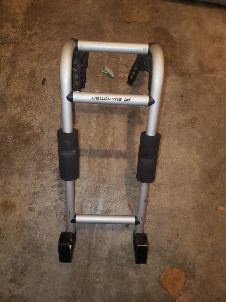 Good condition. Holds 2 bikes to put on an RV ladder. One of the connectors is slightly torn but can just use bungee cord on that one side