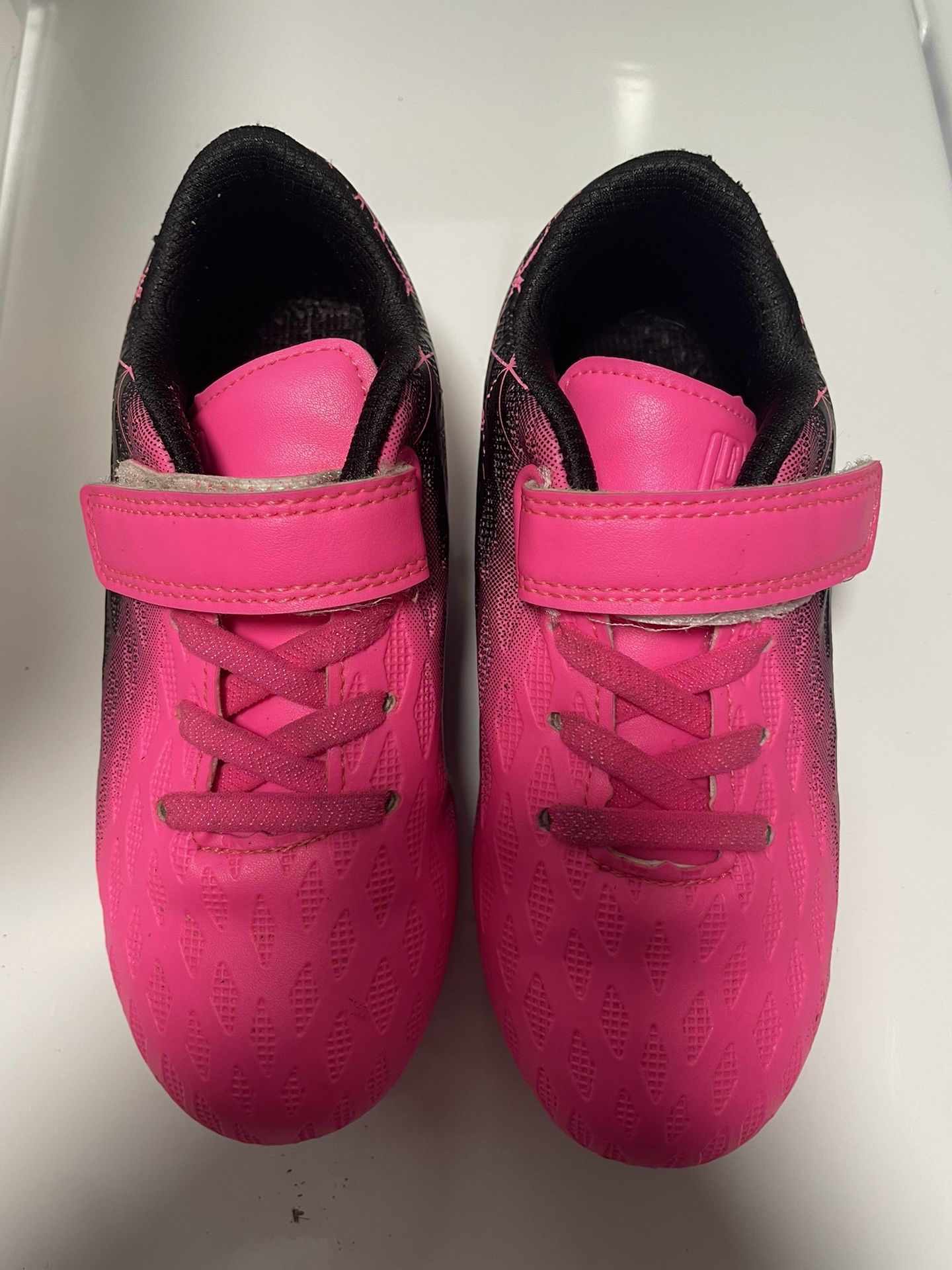 Size 11 like new condition • Upper textured makes better ball control. • Adjustable and durable hook and loop closure for great fitting, no need to tie the lace. • Rubber molded cleats with rotational traction configuration allows stability and grip. • Soft padded tongue can fit his/her instep well and reduce foot friction. • Kids comfortable outdoor soccer cleats are good choices