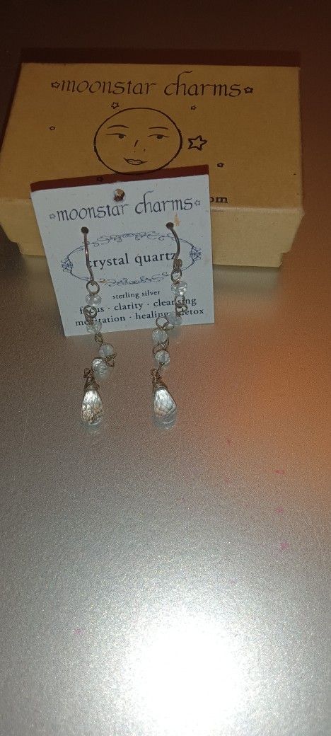 Moonstar Charms Crystal Quartz Earrings. Brand New In Box