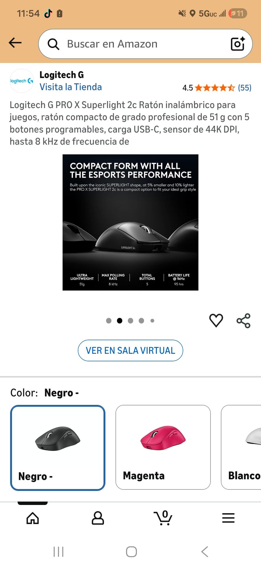 Logitech G PRO X Superlight 2c Ratón inalámbrico para juegos, ratón compacto de grado profesional de 51 g con 5 botones programables, carga USB-C, sensor de 44K DPI, hasta 8 kHz de frecuencia de